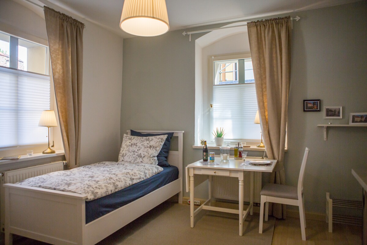 Preciosos y acogedores apartamentos del casco antiguo en el corazón de Bautzen. Edificio céntrico del siglo XVII, entre el Ortenburg y las históricas ruinas de Mönchskirch directamente en el Gersdorffsches Palais. A pocos pasos del centro comercial central con más de 50 tiendas y de los numerosos restaurantes y bares tradicionales en el casco antiguo circundante.