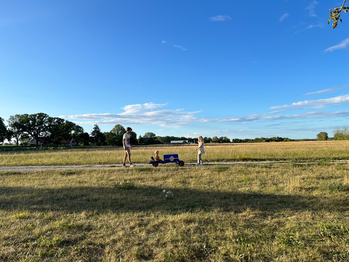 Relájate con la familia en este espacio tranquilo. La casa de campo más antigua de mediados del siglo XIX, tiene un encanto viejo y desgastado y, sin embargo, ofrece todo lo que necesitas para una estancia agradable. Se encuentra en el centro de Gotland, en la parroquia de Hejde, cerca del bosque, rodeada de paisajes abiertos. A partir de aquí es fácil llegar a la isla. En esta granja se realizan actividades de caballos, donde puede haber alguna actividad que puedas disfrutar.