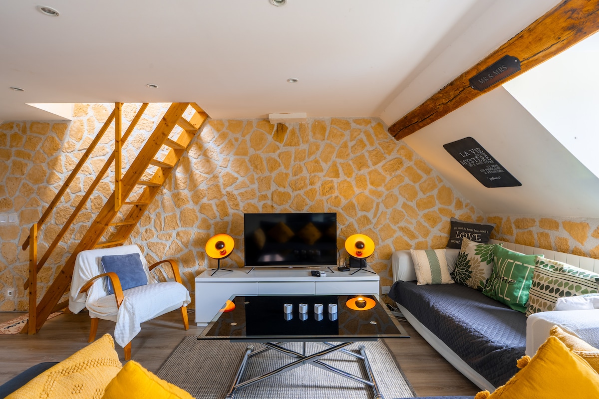 Hermoso estudio reformado de 35 m² situado en el centro de la ciudad en Gonesse y cerca de todos los servicios (panadería, bancos, estanco, tienda de comestibles, pizzería...) con capacidad para 4 personas como máximo. Nuestro alojamiento está situado en la planta baja en una antigua granja totalmente renovada. Ideal para profesionales en viaje de negocios, parejas o amigos que deseen pasar una estancia agradable en un lugar tranquilo y silencioso.