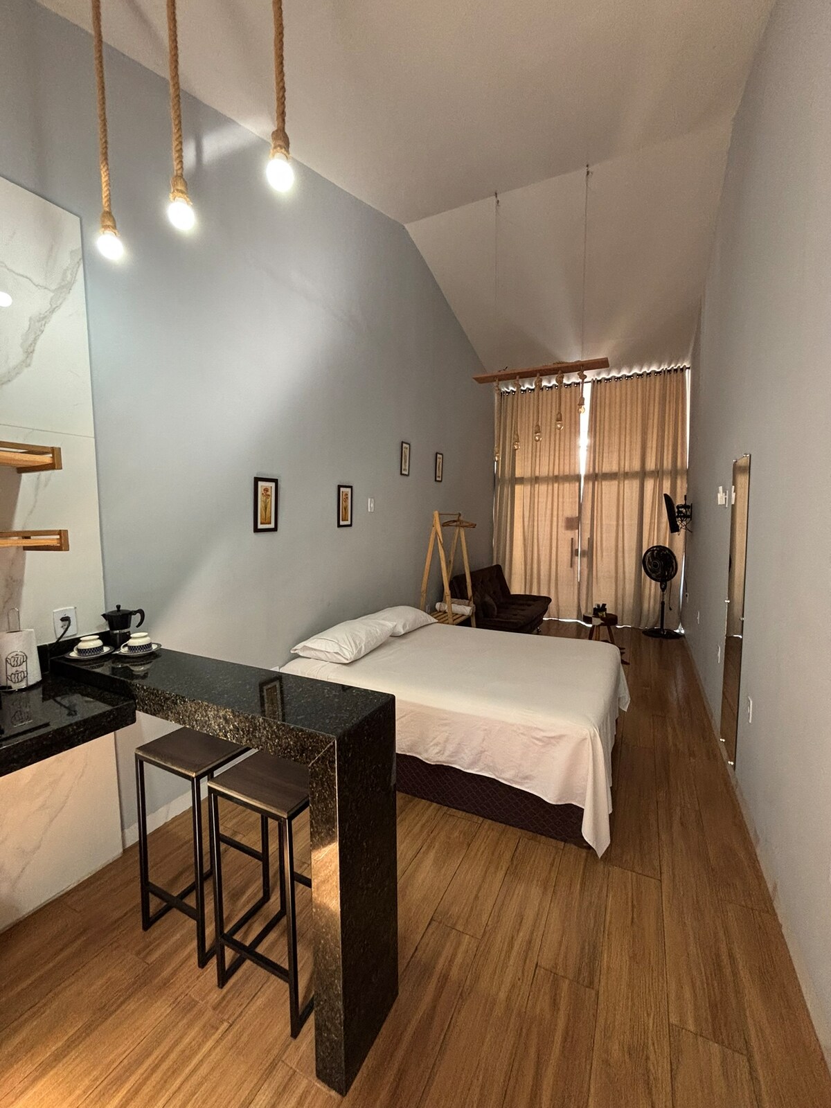 Descubra o seu refúgio perfeito em nosso incrível loft! Este espaço moderno e aconchegante é perfeito para casais, viajantes solo ou até 03 amigos. - Espaço Aconchegante: Loft completo. O que está incluído: - Cozinha Completa: Equipado com utensílios, fogão e geladeira para preparar suas refeições. - Wi-Fi Grátis. _ TV SMART COM APLICATIVOS. - Ar-Condicionado. - Roupa de cama e toalhas. - Estacionamento disponível grátis. - 1 Cama de casal - 1 Colchão solteiro avulso