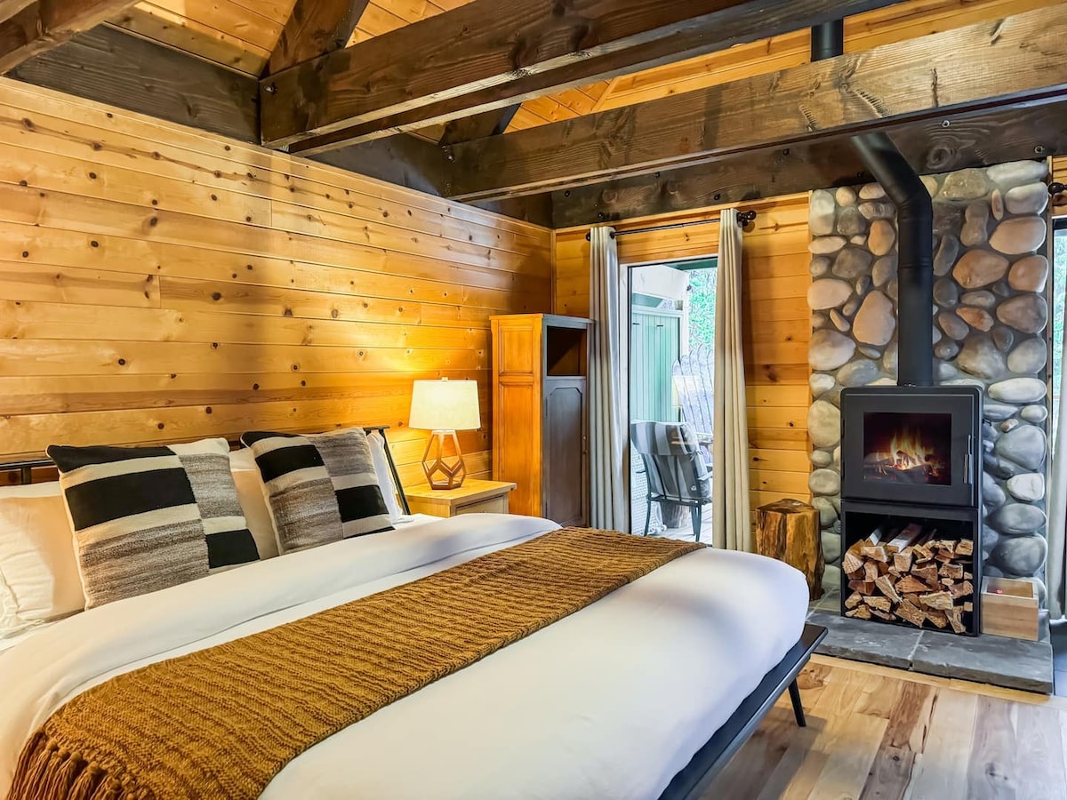 El Riverside Chalet es una cabaña serena y cómoda a orillas del río Sandy, en un barrio tranquilo, a solo 1 hora en coche de Portland. El chalet cuenta con una planta abierta, ideal para que familiares y amigos disfruten de la compañía de los demás mientras cocinan y se relajan junto al fuego. Los visitantes pueden disfrutar de una estancia prolongada y trabajar aquí con privacidad. Su diseño de inspiración escandinava incluye techos abovedados, vigas a la vista y un solárium, todo construido con un toque artesanal.