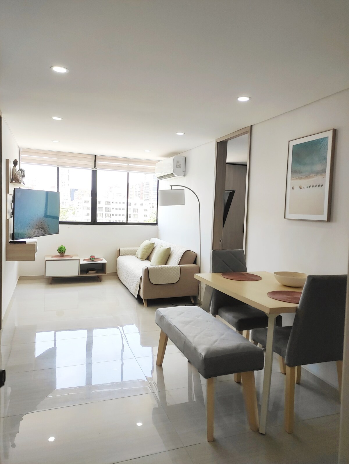 Siéntete en tu hogar, hermoso apartamento inteligente, totalmente nuevo, piscina*, muy tranquilo, contaras con cocina totalmente equipada, Lavadora, cafetera, utensilios de cocina. A 1 cuadra de la vía 40 y a tan solo 500 MT estarás en el Malecón del rio, Caimán del rio y el centro de convenciones Puerta de Oro, a 10 minutos en 🚗están los principales centros comerciales del norte de B/Quilla, parqueadero en la calle. Vigilancia 24 horas. LUGAR NO APTO PARA FUMADORES