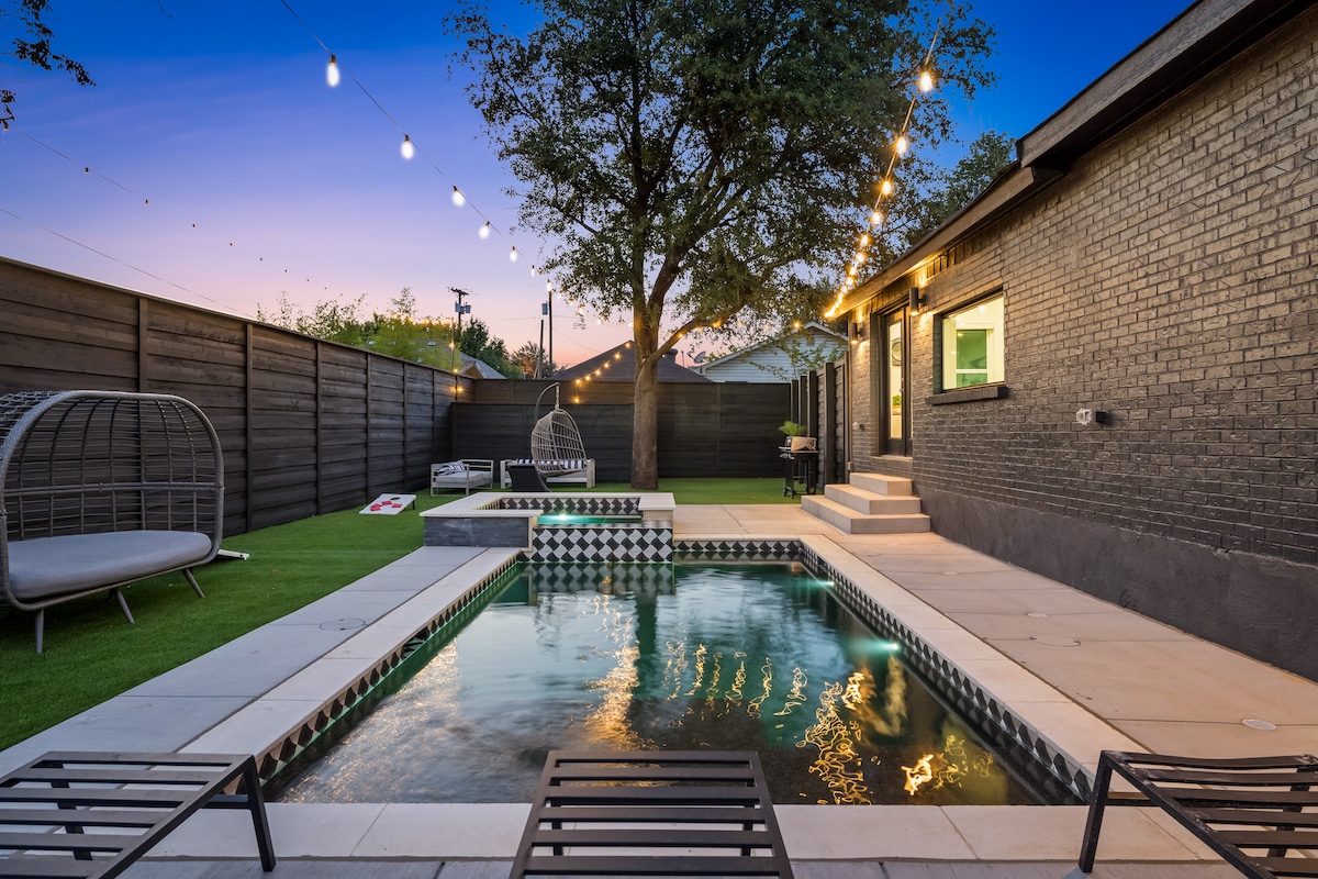 ¡Te damos la bienvenida a nuestro impresionante retiro cerca de Bishop Arts en Dallas! Esta excepcional casa es el santuario perfecto para tu escapada de ensueños, ofreciendo lujosas comodidades, incluyendo una piscina y jacuzzi, todo dentro de una ubicación privilegiada. Al entrar, la sala de estar de concepto abierto está bañada por luz natural, creando un ambiente cálido y acogedor. Sal a tu propio paraíso privado. El patio trasero es un refugio para la relajación y el entretenimiento, con una enorme terraza cubierta y una piscina/bañera de hidromasaje.