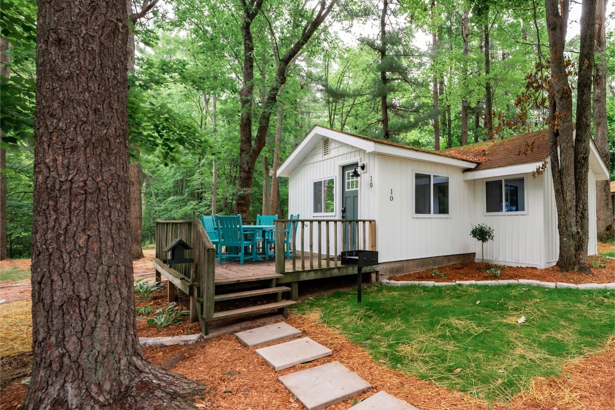 Este encantador bungalow en 5 acres está ubicado a lo largo de 1000 pies del río Boardman. Tenemos kayaks, hamacas, comedor/sala de estar exterior con chimenea y bañera de hidromasaje. La propiedad está rodeada de terrenos y senderos estatales, perfectos para practicar senderismo, kayak, side by side y motos de nieve. La cocina está totalmente equipada con condimentos básicos. El baño tiene toallas, un secador de pelo, pequeños artículos de tocador y jabones. El wifi te ayudará a mantenerte conectado. ¡Perfecto para una estancia de luna de miel o escapada en pareja! A 25 minutos de TC.