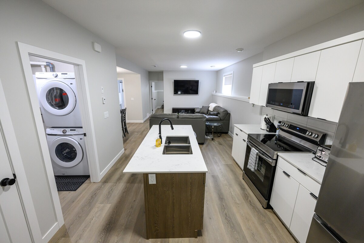 Welcome to your private retreat—a beautifully designed 2-bedroom, 2-bathroom lower suite nestled in a peaceful, family-friendly neighborhood. Thoughtfully curated for comfort and relaxation, this upscale space is perfect for families, couples, long-term guests, or anyone seeking a calm escape. Whether you’re here for work, family visits, or a relaxing getaway, this suite offers a serene, refined setting with all the comforts of home.