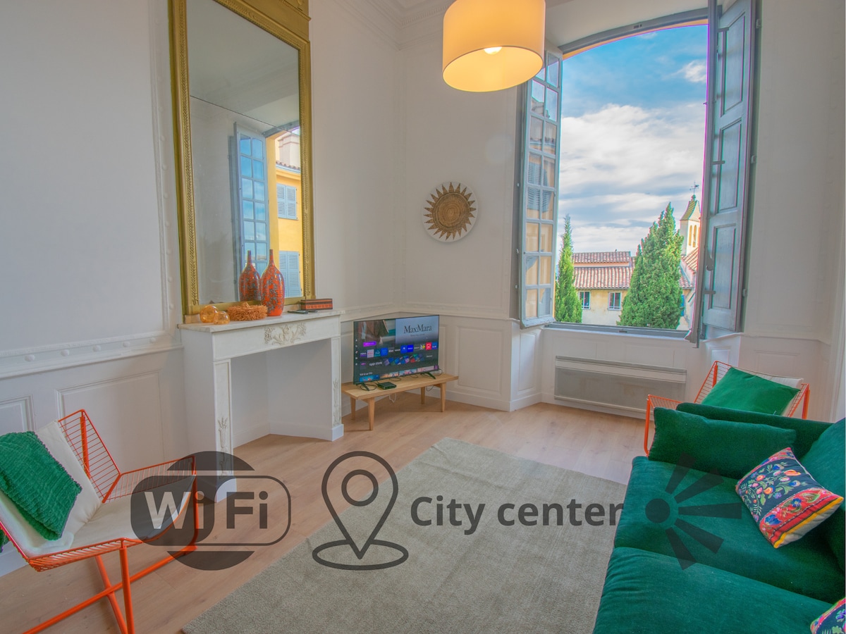 Newly refurbished studio apartment in a historic and traditional Nice building built in 1834 where the famous French artist Henri Matisse lived and painted several masterpieces such as The Bay of Nice in 1918. Fantastic panoramic sea view from the balcony. Beau Rivage beach and lounge on your doorstep. Just a few minutes walk to the city heart, the old town (great at day and night), many restaurants and shopping areas. Cozy and luminous as the apartment is facing South. 32 m2 room (344ft2)
