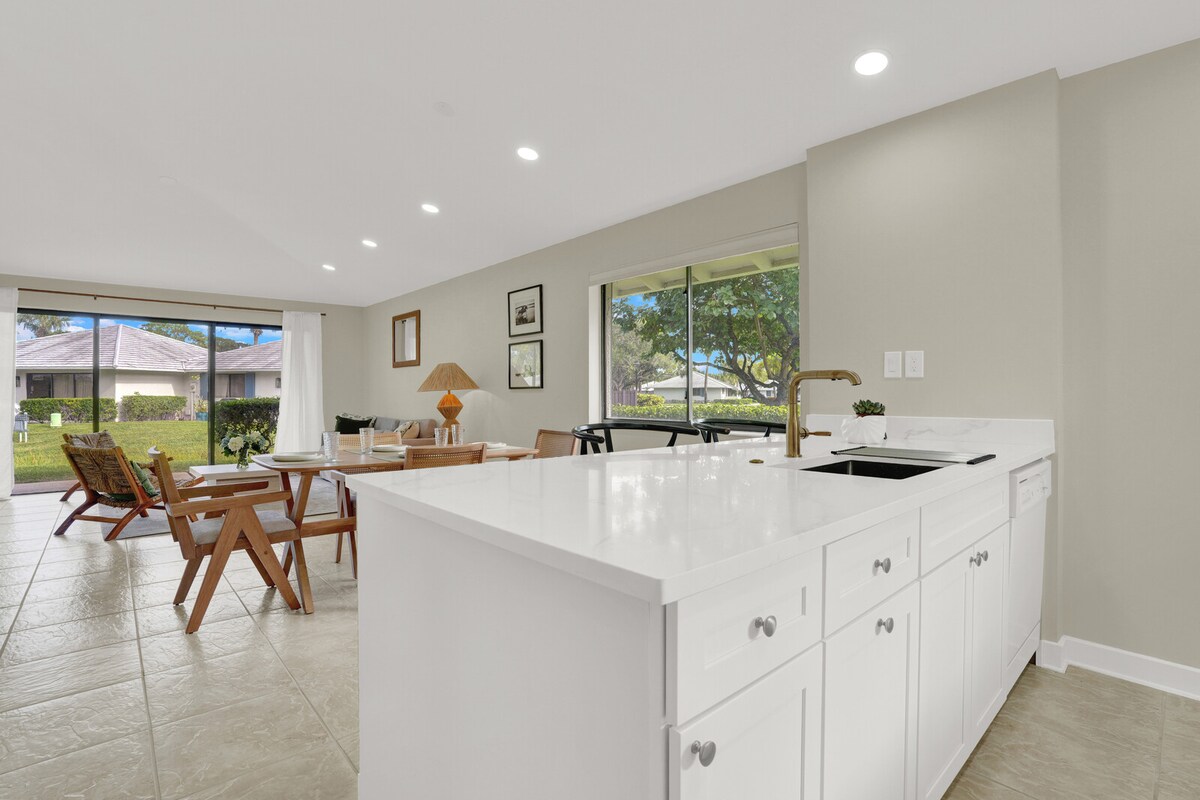 Adorable casa adosada/casa de campo PGA National recién reformada con dos dormitorios, vestidor y dos baños. Cocina a estrenar con electrodomésticos de acero inoxidable, lavavajillas, mesa de comedor completa, lavadora y secadora en la unidad, y wifi de alta velocidad gratuito. Disfruta del patio privado con asientos al aire libre y parrilla de propano. A poca distancia a pie de muchos servicios como la piscina comunitaria.