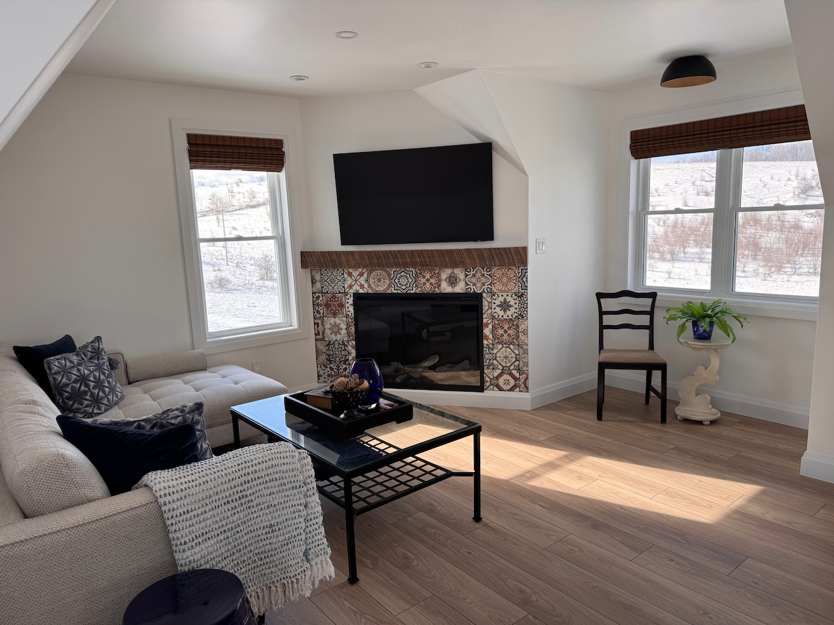 Perfecto para una escapada al campo. Un estudio de diseño luminoso, espacioso y de concepto abierto con hermosas vistas a las colinas, cama tamaño queen, baño de 3 piezas, barbacoa dedicada, calefacción/aire acondicionado más una estufa de leña, bar con fregadero con una máquina Nespresso, horno de encimera de lujo y nevera de bar y pista de tenis completamente nueva, lavandería disponible bajo petición. Mono Cliffs, Boyne Valley, Reserva Natural de Hockley Valley Prov. Parks & Mansfield Recreation Centre están a pocos minutos. Ideal para practicar senderismo, ciclismo, raquetas de nieve y esquí de fondo.