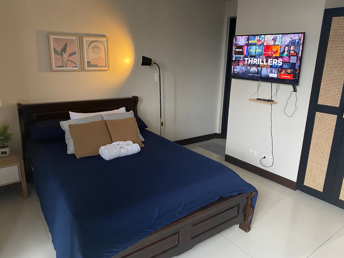 Luxurious 1 Bedroom unit. Walking distance to malls, 24hrs convenience stores, restaurants, groceries, and Lively Nightlife. ♛ 55" 4k UHD TV + A/C + Workspace ♛ Nintendo Switch for more fun! ♛ Netflix, Disney+, and Youtube access ♛ 400mbps upload and download speed! ♛ Board games are provided if you wanna have fun with friends! ♛ fresh towels, and essentials provided ♛ Kitchenwares, cooking appliances, Microwave ♛ Coffee Machines ♛ Steam Iron, Hairdryer and Water Heater