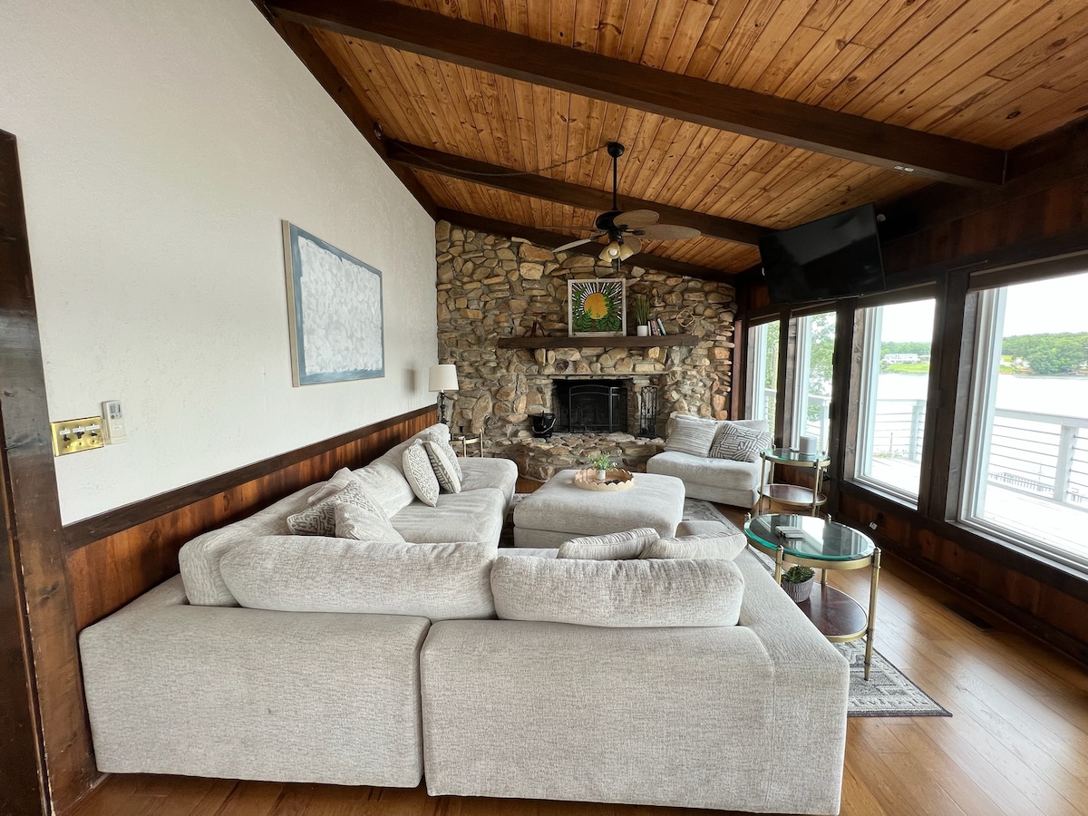 Ven a disfrutar de la belleza del lago Greenwood desde esta joya personalizada totalmente renovada. Tanto si prefieres flotar en la cala como navegar por el lago, este lugar es una escapada perfecta para familias. 3 dormitorios, 2 baños, planta abierta con sala de estar que conduce a una cocina personalizada y un adorable rincón para sentarse. La enorme terraza ofrece comidas al aire libre y mucho espacio para relajarse. A poca distancia a pie del nuevo muelle, que es lo suficientemente grande para tu barco y para divertirte en el agua. ¡Ven a alojarte y disfruta de nuestra escapada al lago!