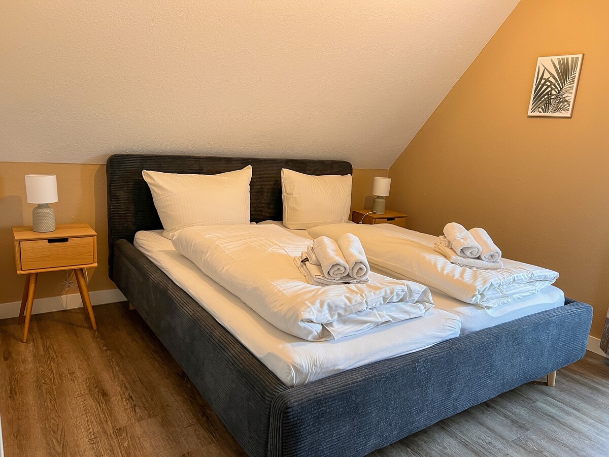 El apartamento de 80 metros cuadrados "Silbermöwe" está ubicado en el piso superior y ofrece en dos plantas hasta 6 personas todo lo necesario para un descanso relajante de la clase adicional; además de una chimenea de leña, también hay una sauna en el apartamento. En el segundo piso encontrarás uno de los tres dormitorios del apartamento desde el que tienes una vista impresionante de la reserva natural de Leyhör. Además, el departamento tiene una plaza de estacionamiento en la casa.
