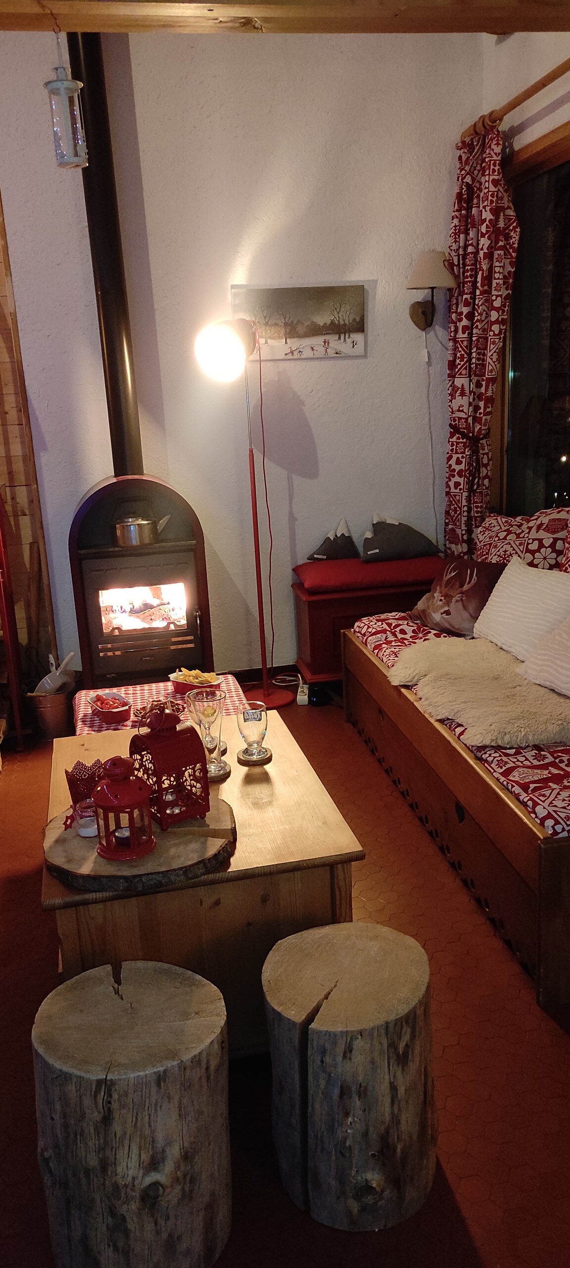 Apartamento de 2 habitaciones amueblado, cocina americana equipada con horno, microondas, raclette, cafetera, nevera, congelador, abierta a la sala de estar con sofá cama y televisión, equipo de música, balcón equipado con guardaesquís, inodoro independiente, un cuarto de baño con cabina de ducha, lavadora y secador de toallas, un dormitorio independiente, con literas y una cuna, opción para un bebé de tener una cuna.