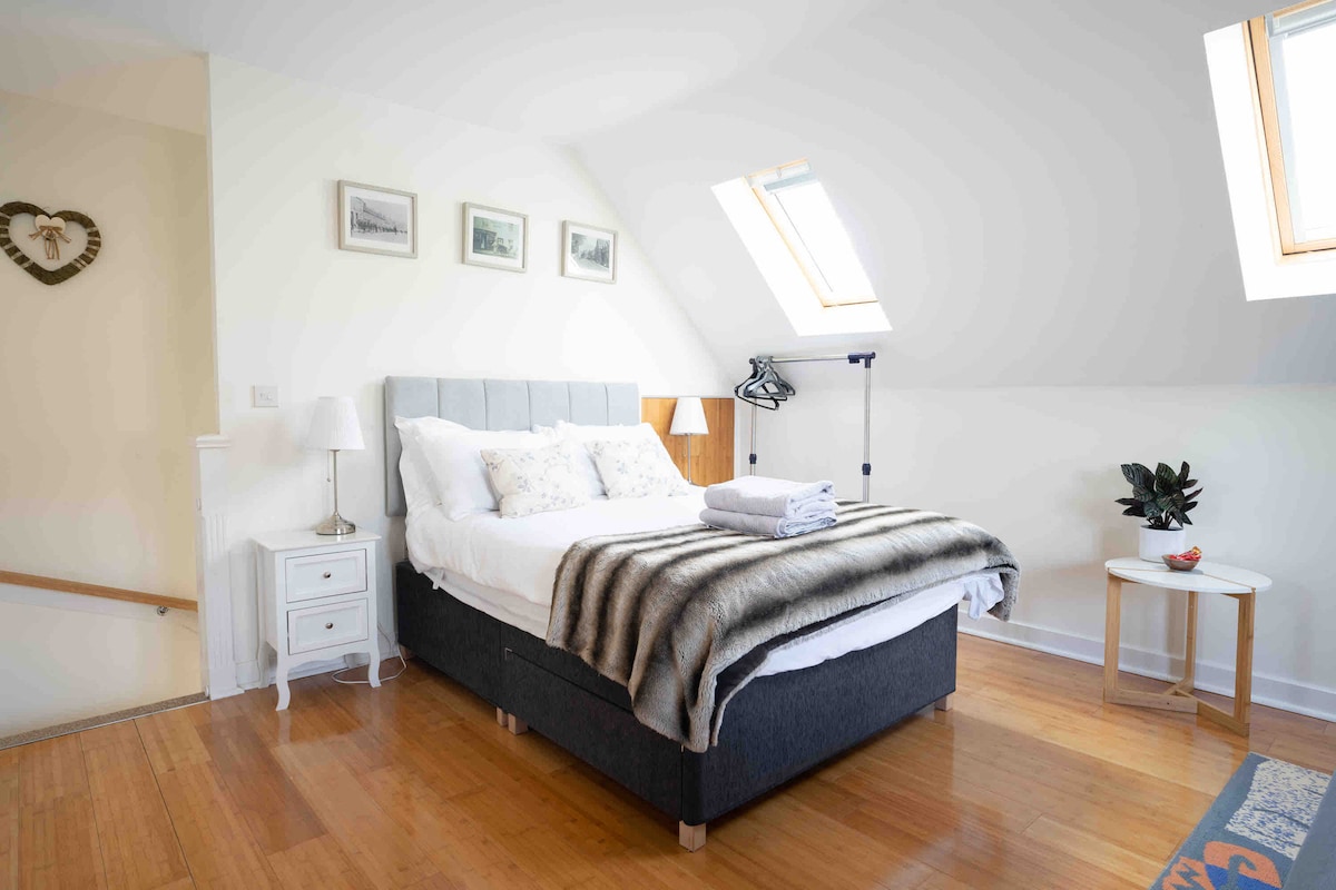 Muir Cottage ha pasado de ser un granero del siglo XVIII a un diseño inspirado en el Movimiento de Artes y Oficios que se estableció en los Cotswolds en el siglo XIX, lo que resultó en una variedad de ventanas con parteluces de piedra, vigas a la vista y muebles de época. Está muy bien situada en un valle escondido en el lado de sotavento de la colina más alta de los Cotswolds, pero a solo minutos de Winchcombe, una clásica "ciudad de la lana" de Cotswold con excelentes tiendas y restaurantes.