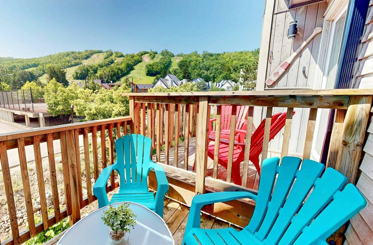 ¡Escápate a nuestra acogedora casa adosada, a 5 minutos a pie de los remontes y el pueblo de Blue Mountain! Perfecta para familias o grupos, diseñada para la comodidad después de un día en las pistas. - Relájate junto a la chimenea interior o sumérgete en la bañera de hidromasaje. - Prepara un festín en nuestra cocina totalmente equipada. - Disfruta de wifi de alta velocidad y Roku TV para noches de cine acogedoras. - Estacionamiento gratuito disponible (2 coches). Despiértate con hermosas vistas y sal a esquiar, hacer snowboard o explorar. La escapada de invierno perfecta para relajarse y crear recuerdos duraderos.
