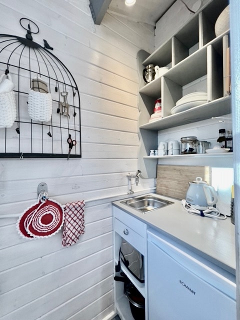 In Traumlage - 150 Meter vom schönsten Nordstrander Strand Fuhlehörn entfernt - befindet sich das Nordstrandnixenhaus mit zwei Wohnungen. Bestens geeignet für zwei Personen ist diese kleine obere Wohnung. Das Bett steht in einer Nische, die durch einen Vorhang geschlossen werden kann. Vom Fenster aus blickt man auf den Deich. Ein kleiner Hinweis für unsere sehr großen Gäste: Die Deckenhöhe beträgt hier 2,07 Meter. Diese Wohnung befindet sich über der Nordstrandnixe an Land.