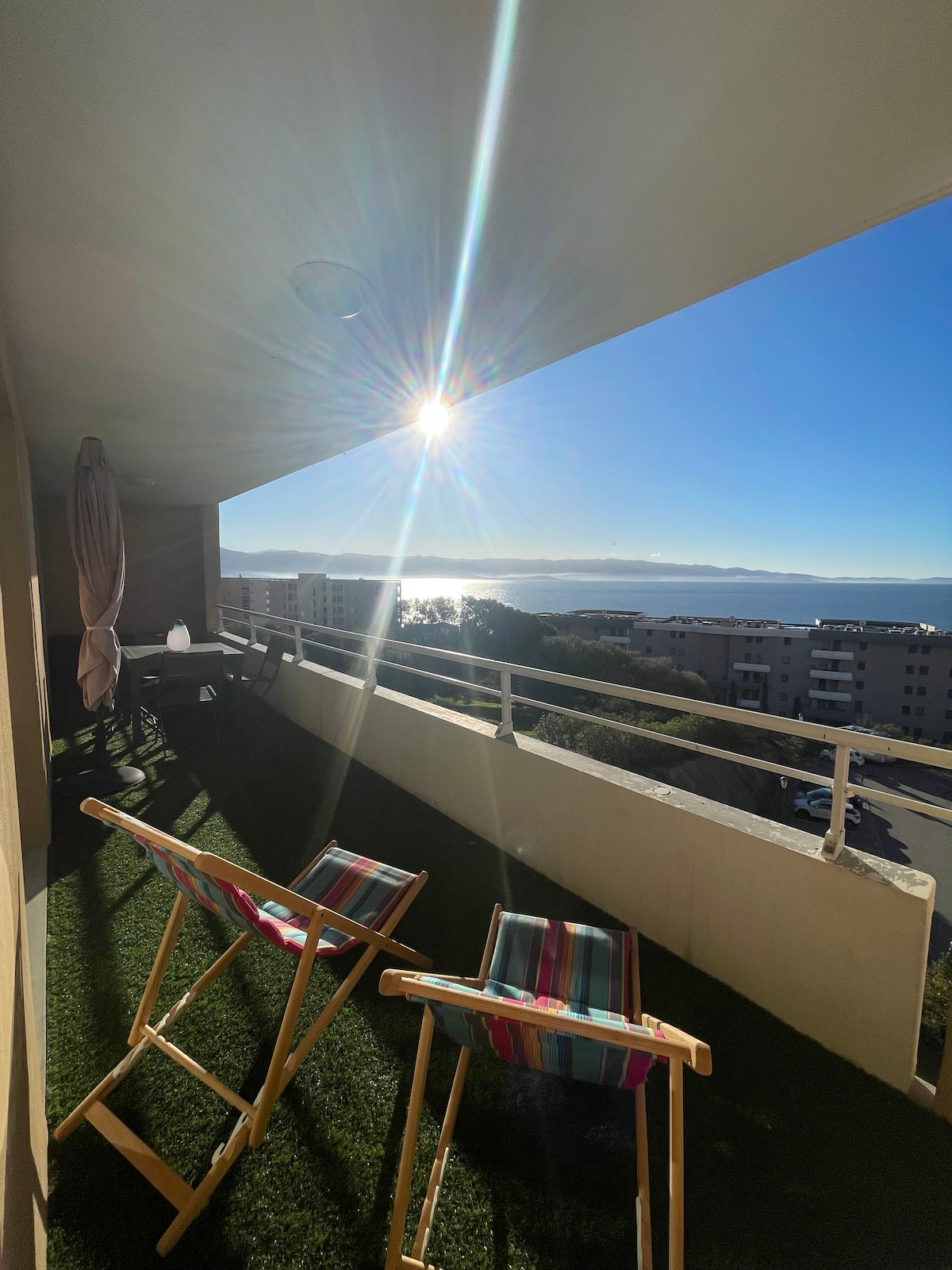 Vous serez chaleureusement accueillis dans un grand T2 meublé, en angle exposé plein sud, calme, en dernier étage, vue montagnes, aperçu mer dans une belle résidence proche des commodités, de l'aéroport, des plages de Porticcio (trois minutes en voiture). Ce logement, avec services hôteliers, son linge de maison (draps, serviettes..), ses couchages professionnels. Vous pourrez cuisiner vos repas, profiter de la terrasse de 17 m2 aménagée pour le farniente!