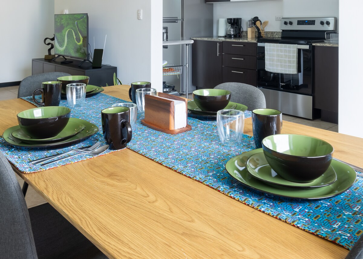 Welcome to CR! Our cozy and convenient Airbnb located just a short drive from the airport is perfect for travelers for a layover or an extended trip. Making it easy to catch an early flight or to rest after a long journey. ***Shuttle service*** Shuttle service for a fair price for an easy and relax transportation to the condo. -Fully equipped Kitchen -AC -Smart TV -Wi-Fi -24/7 security with free parking. -3min from airport, supermarkets. -Near SJO -Pool and gym to relax after long flights.