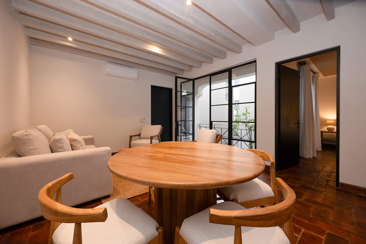 Descubre Paseo del Centro, un condominio boutique que refleja el encanto y el espíritu de San Miguel de Allende. Ubicado en el Centro Histórico, este elegante departamento combina la elegancia colonial con el confort moderno, ofreciendo un espacio ideal para amigos, parejas o familias que buscan una estancia tranquila y de lujo, a solo unos pasos de los lugares más icónicos de la ciudad.