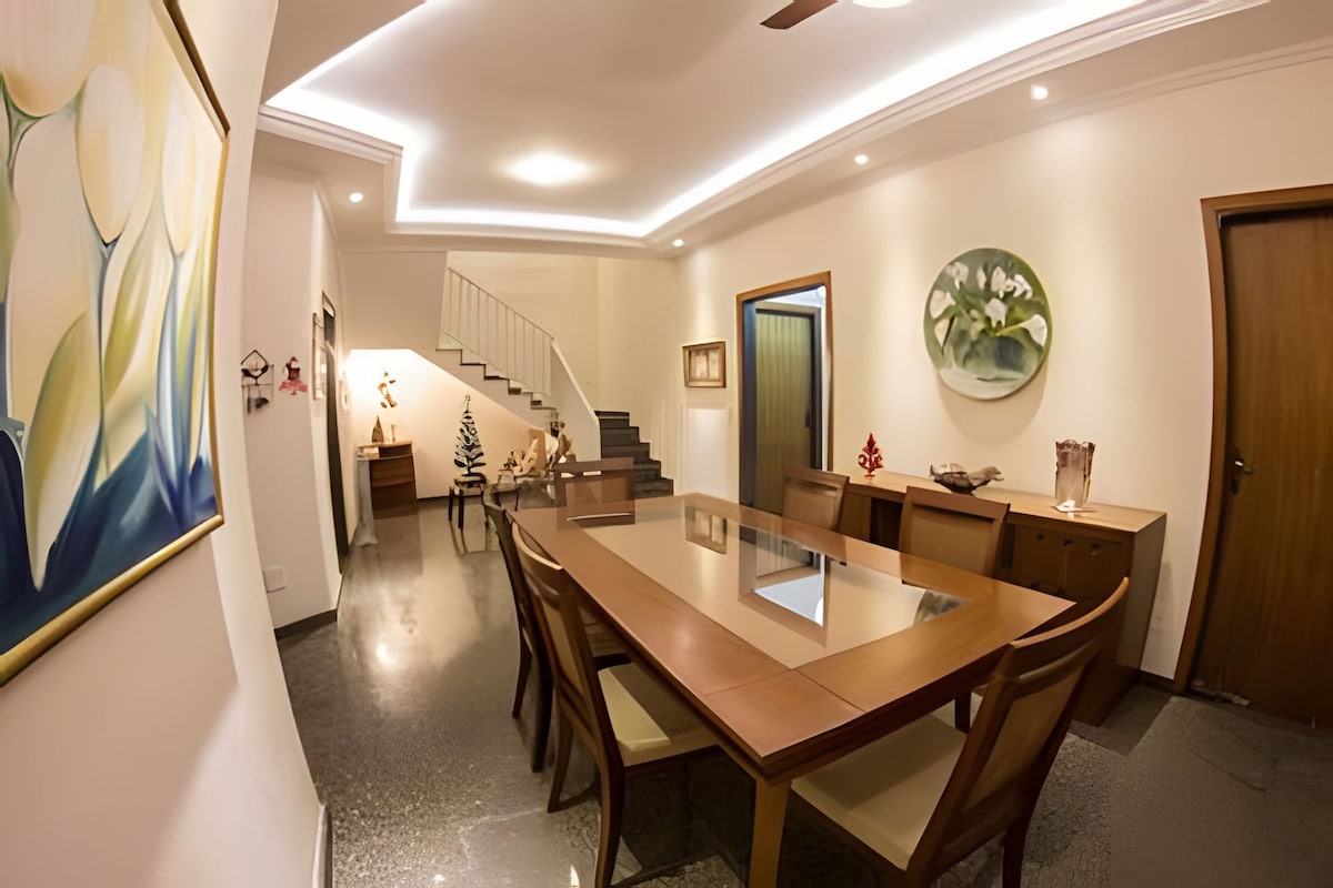 La casa es espaciosa, ventilada y tiene 4 dormitorios con aire acondicionado. •en el 2º piso- terraza con barbacoa y vistas a la Basílica Nova, teleférico y Morro do Cruzeiro. • en el 1º piso: una suite y dos dormitorios con baño compartido. • En la planta baja: un dormitorio grande, baño, sala de televisión, comedor, cocina y una plaza de aparcamiento para coches pequeños y medianos. •Casa a 10 minutos a pie de la Basílica Nacional, a 12 minutos de la feria ambulante, a 2 minutos del mercado, farmacia, algunas tiendas y restaurantes.