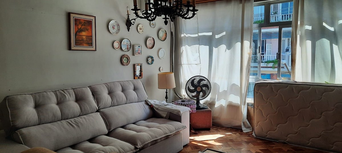 Apartamento bien ubicado entre Astúrias y Tombo (5 min. a pie) Tombo elegida la más limpia de Guaruja. Planta BAJA tranquila, cocina planificada y bien equipada, camas cómodas, 1 cama Queen AIRE ACONDICIONADO, 2º dormitorio cama doble, Internet de 500 mega, ideal para home office. Tiene capacidad para 6 personas con mucha comodidad, seguro, acogedor. Comercio variado, 1 PLAZA (rotativa) calle tranquila. Toma para cargar EV. Tarifa: R$ 80,00. ¡LA ENERGÍA DEL MAR CERCA DE USTED!