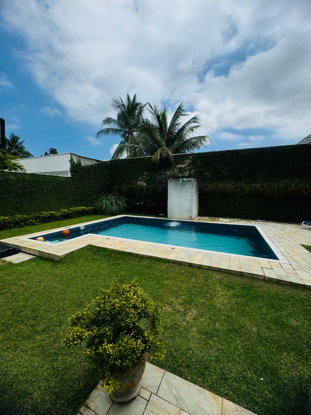 Disfrute dejando a sus hijos en un ambiente seguro y agradable dentro de un lujoso condominio (seguridad las 24 horas) garaje para todos los coches, perfecto para familias/amigos, con 5 amplios dormitorios + 5 baños con capacidad para 20 personas, *12 para dormir* (7 camas+8 colchones) *límite de 12 huéspedes por Airbnb*, si se supera este número de personas, se cobrará un cargo adicional (R$ 250,00 por persona por día) pagado directamente al propietario. Piscina privada con cascada + zona gourmet completa, con parrilla y horno de pizza.