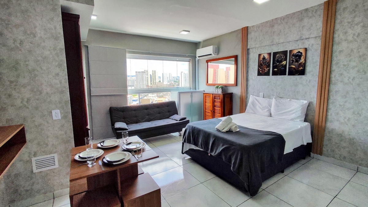 🌞 ¡Ven a disfrutar del verano en nuestra piscina! 🌞 Te damos la bienvenida a Stúdio 1107, un refugio de comodidad y sofisticación diseñado para ofrecer una estancia inolvidable. Este lujoso apartamento de 29m ² está totalmente amueblado y equipado con servicios de alta calidad, que incluyen TV de 45pulgadas, aire acondicionado, internet de alta velocidad y una acogedora cama con un loft de excelencia. Ubicado en un edificio moderno y estratégicamente situado en la región central.