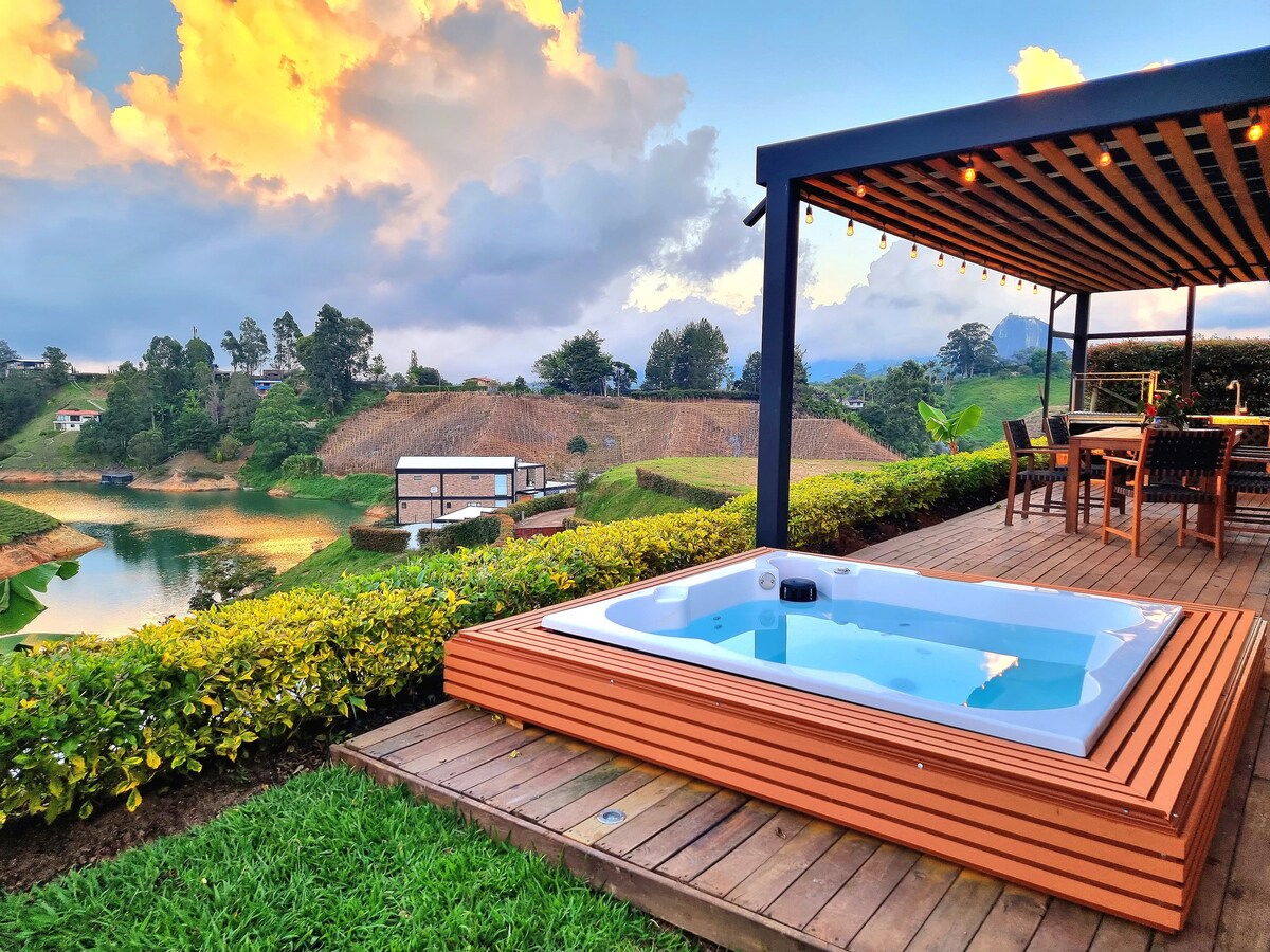 "Disfruta del encanto y la tranquilidad en nuestra tiny lake house en la mejor ubicación, un refugio perfecto 100% privado en medio de la naturaleza. Relájate en un jacuzzi de lujo mientras admiras vistas únicas a la represa y a la famosa Piedra del Peñol. Que además cuenta con una chimenea , y una cocina completamente equipada para todas tus necesidades culinarias un deck exterior, muelle. Perfecta para hasta 4 personas, es el lugar ideal para desconectar y crear recuerdos inolvidables."