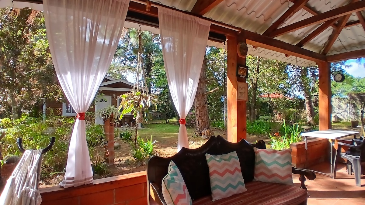 Villa Colibrí es una cabaña privada rodeada de naturaleza, con jardín, churrasquera y fogata exclusiva. Un refugio ideal para descansar y desconectar. Cuenta con un área de trabajo y entretenimiento con proyector Samsung Freestyle para disfrutar películas con tus propias cuentas de streaming. Ubicada a 15 min (11 km) de San Lucas y a 10 min de Sumpango y Santo Domingo Xenacoj. Incluye WiFi, cocina equipada y estacionamiento privado. Ideal para huéspedes que viajan en vehículo propio.