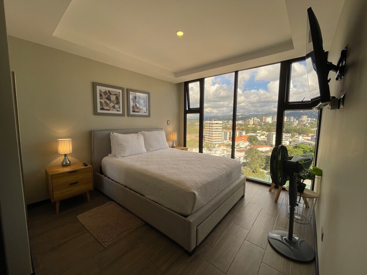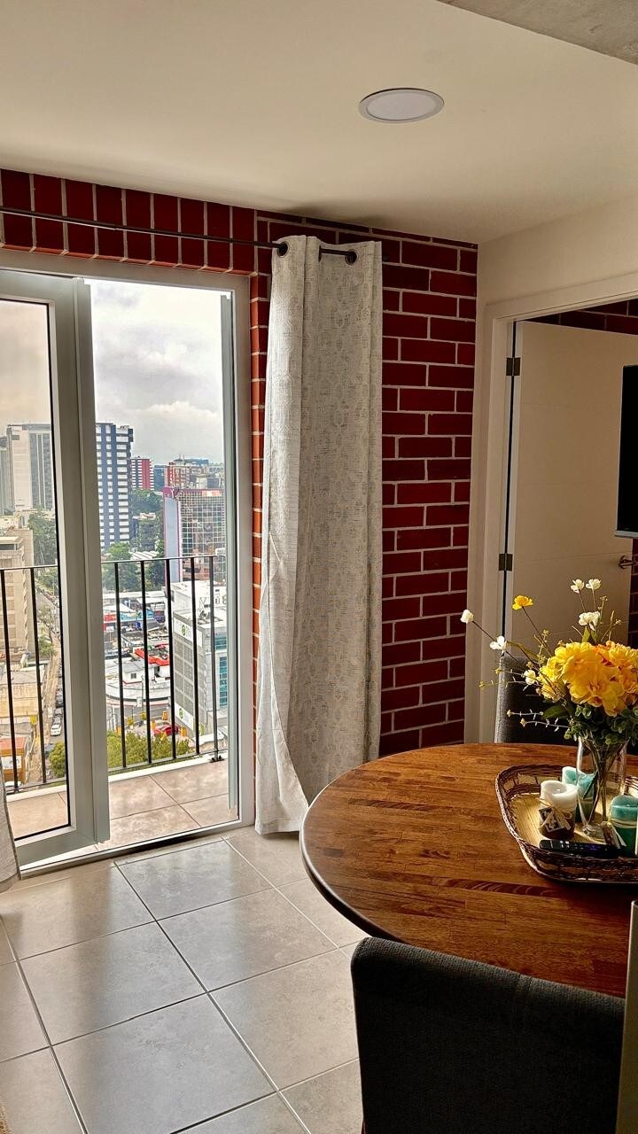 Lindo apartamento completo en un 14vo nivel, ubicado en zona 10, en el corazón de la ciudad, a solo 10 minutos del Aeropuerto y a 5 minutos de la Zona Viva. Ideal para parejas, amigos, ejecutivos, familias pequeñas o personas que gusten hospedarse en la mejor zona de Guatemala