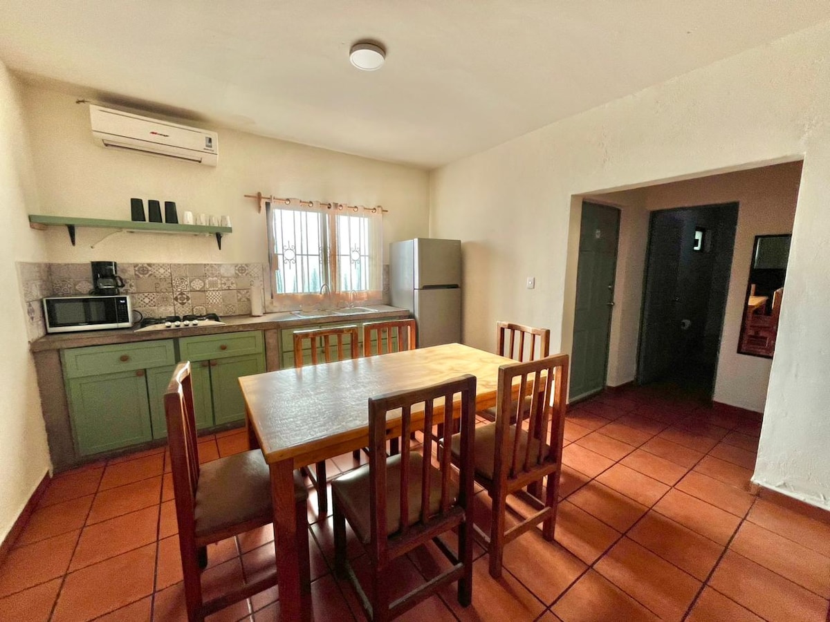 Departamento acogedor en planta baja con 2 recámaras a una cuadra de playa privada y tranquila. A una cuadra de la avenida principal y super mercado Ley, tiendas, lavandería y comedor. Cámaras de seguridad en calle. Agua potable de filtro en lavabo.