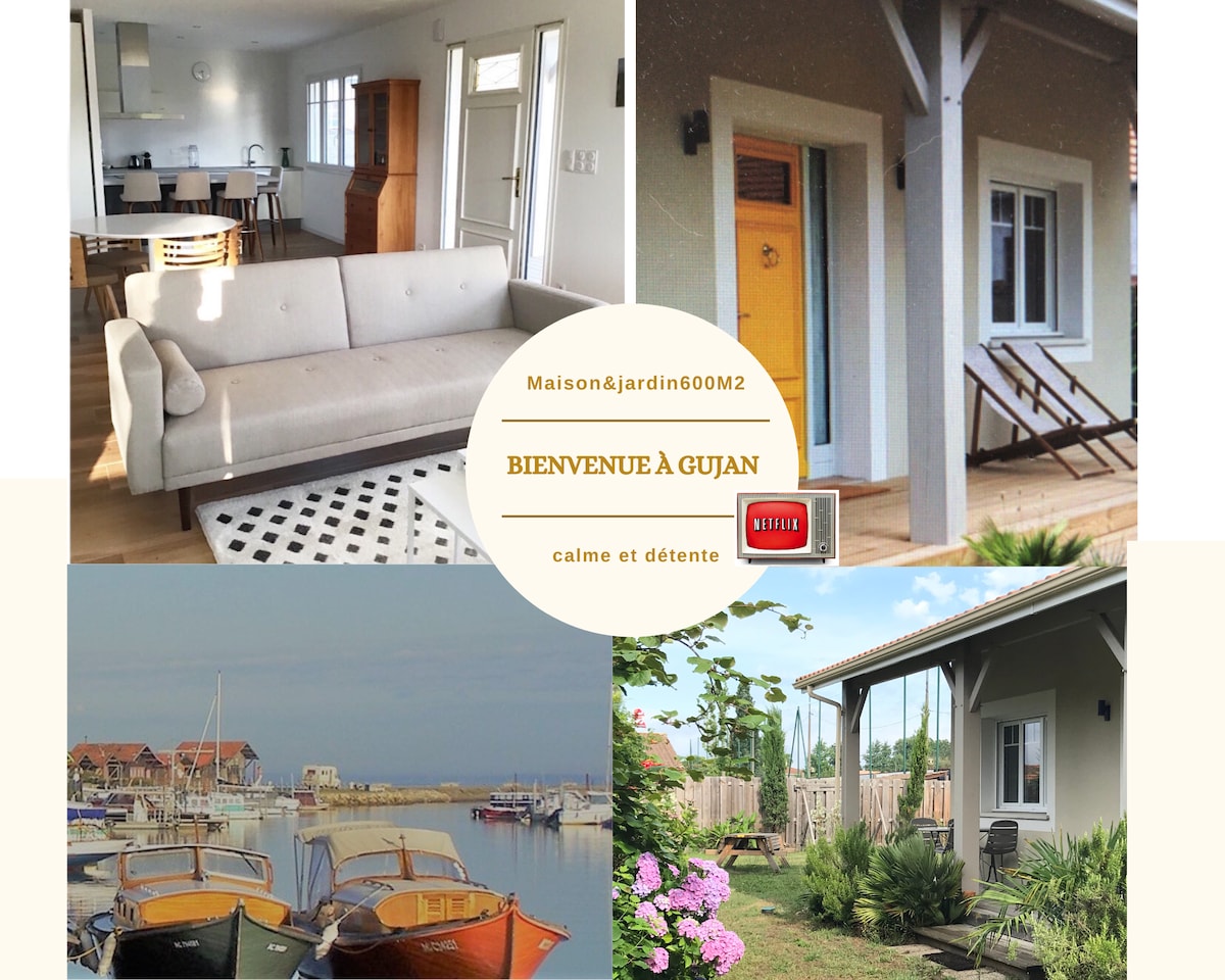 Una casa reciente (81 m2) situada en una zona muy tranquila, cerca de todas las tiendas, con un jardín ornamental de 600 m2, sin vecinos y con una hermosa terraza. ¡A dos pasos de los 7 pequeños puertos y de las cabañas de ostras, lugar muy pintoresco! Idealmente situado para paseos alrededor de la «Bassin»y a 15 minutos de Arcachon, la duna del pilat y las playas oceánicas.