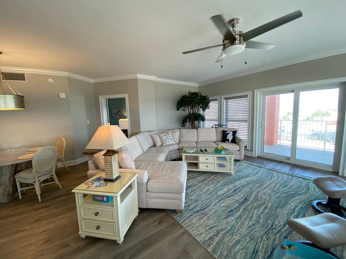 Bienvenido a tu alquiler vacacional definitivo en México Beach, Florida: una impresionante unidad de dos dormitorios y dos baños con un balcón extragrande que ofrece vistas inigualables al océano y puestas de sol impresionantes. Este es el lugar perfecto para que te relajes y experimentes la máxima relajación. Al entrar, inmediatamente te sorprenderán los hermosos y cómodos muebles y la decoración que realzan el encanto y la comodidad de la unidad. La amplia sala de estar cuenta con un gran sofá modular y una lar