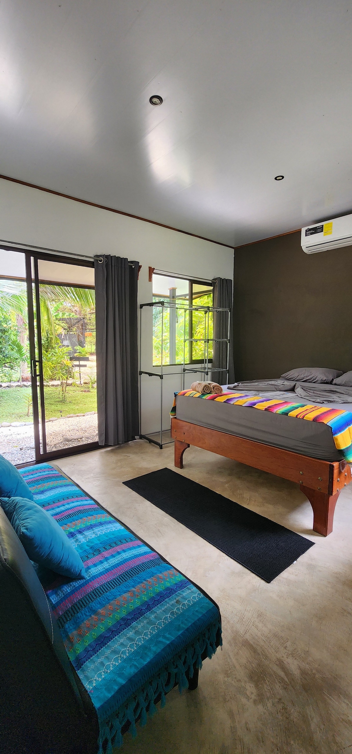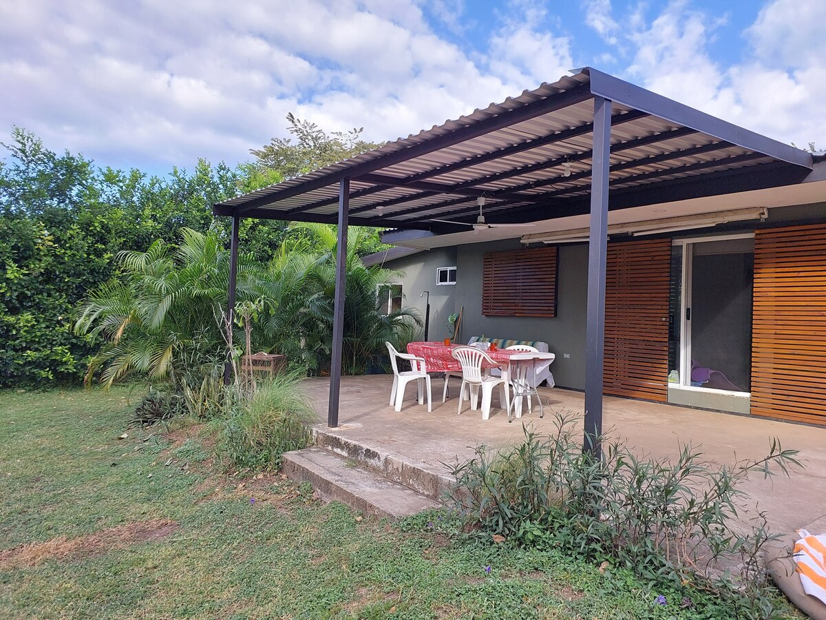 Suite moderna rodeada de naturaleza, a 2 min de Playa Hermosa (cerca de Jacó), famosa por el surf! Cómodo espacio con 2 habitaciones (con A/C), 1 baño, y cocina/comedor techado al aire libre. Relájate en la terraza con vista al jardín y observa a los monos cariblanca, lapas y tucanes que nos visitan a diario. El alojamiento privado está en planta baja, con entrada independiente, pero es parte de nuestra casa donde vivimos los anfitriones. Jardín y parqueo cerrado se comparte con nosotros.