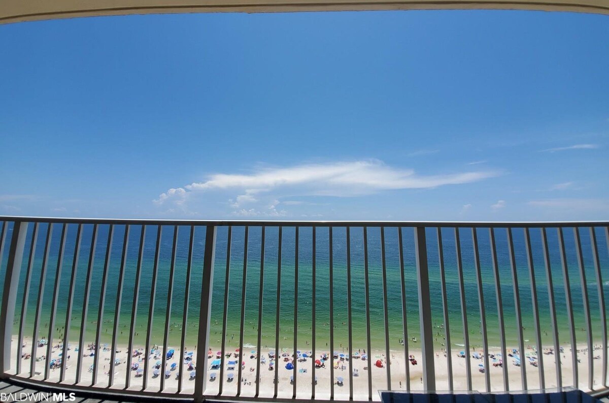 En el corazón de Gulf Shores se encuentra este apartamento frente a la playa con excelentes vistas en todas las direcciones de las playas blancas como el azúcar y las aguas esmeralda. Desde el balcón se puede ver el majestuoso amanecer y el atardecer o maravillarse con los delfines jugando. Directamente al este se encuentra la playa pública con muchas comodidades para toda la familia, incluidos restaurantes, tiendas y un parque infantil. Después de un día divertido, prepárate para hacer la cena en la cocina bien equipada, relájate con la alegre decoración y siéntate cómodamente.