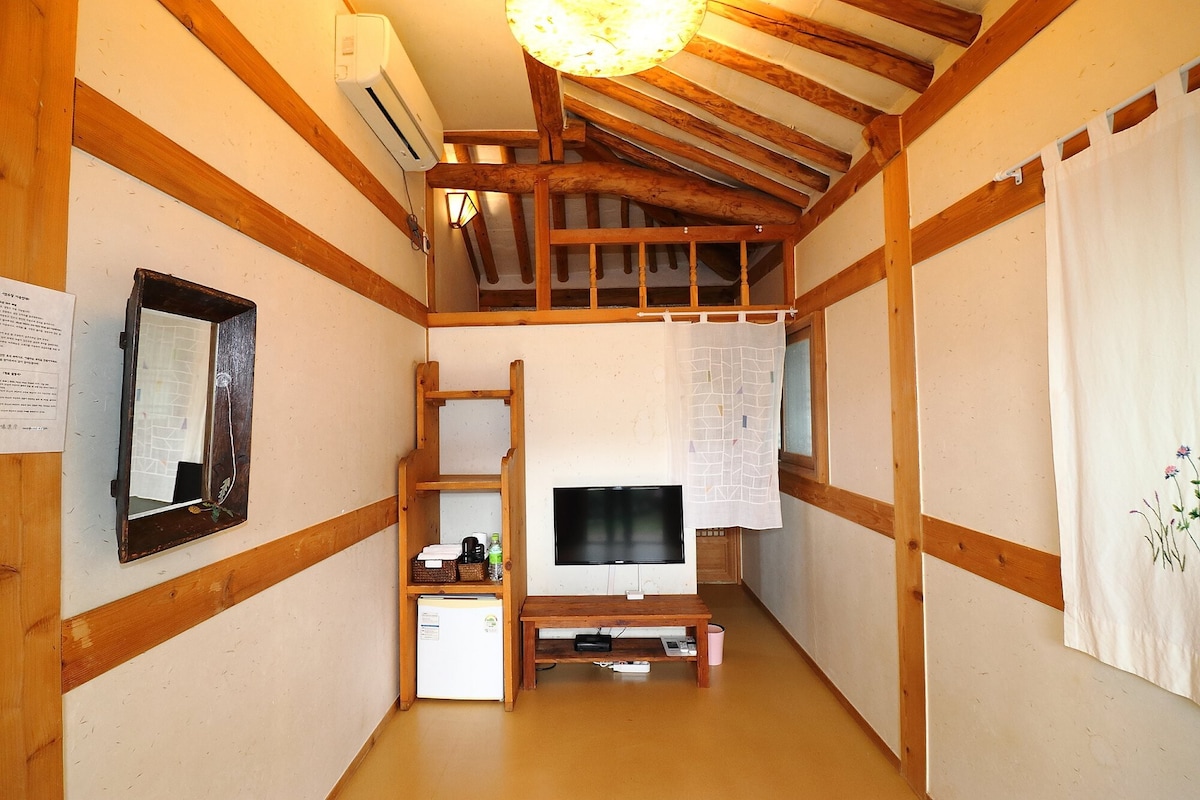 Kkeunjudaeng Hanok Accommodation (Gamdong Outum Room) Ubicación en Jeonju Hanok Village (habitación privada, dos pisos, cama, desayuno)