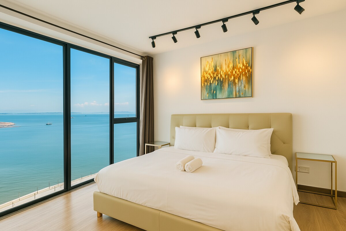 * Wi-Fi incluido * A 5 minutos de Gurney, a 10 minutos de Georgetown y Gleneagles. * magníficas vistas al mar * 2 habitaciones con baño. * Jacuzzi clásico en la suite principal * secadora y dispensador de agua * Lavadora, cocina funcional y equipada. * Ropa de cama, artículos de tocador y toallas incluidos * Canales de televisión multinacionales y películas ilimitadas. * Tabla de planchar y plancha. * 1 estacionamientos interiores, seguridad las 24 horas. Penang ホームステイ 홈스테이