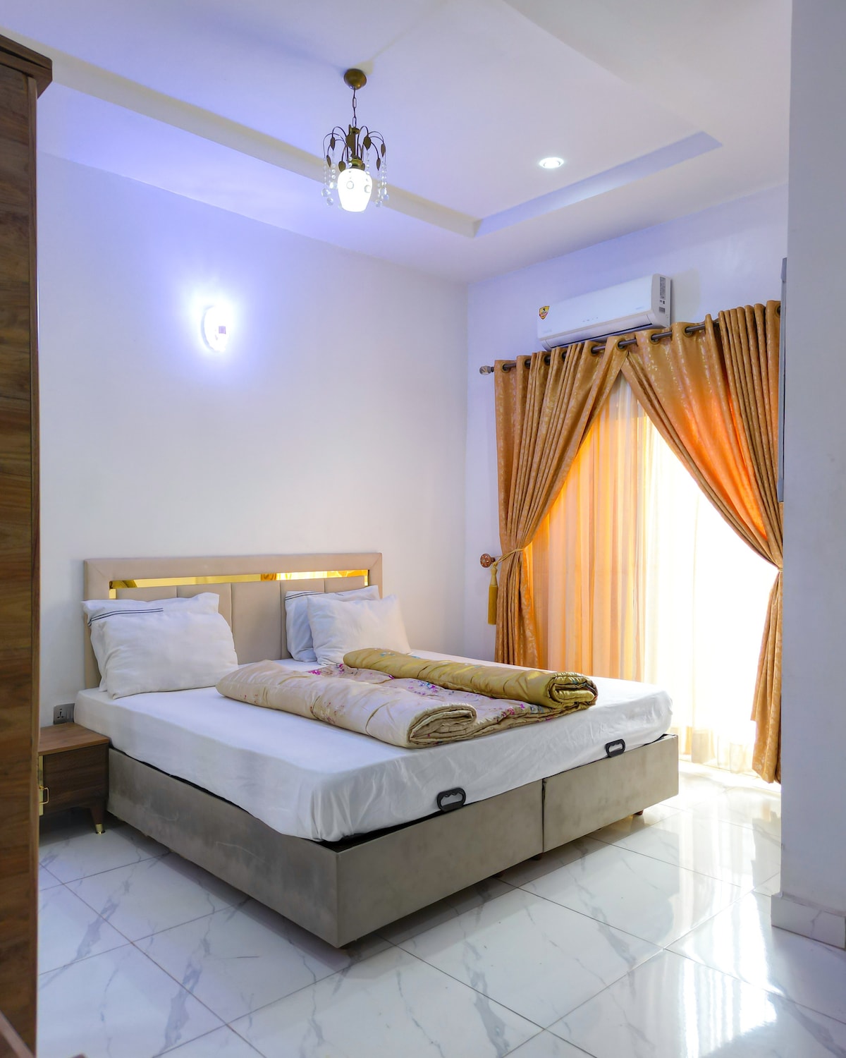 Bienvenido a nuestro elegante apartamento de 2 dormitorios en Sungold Estate, a solo 4 minutos de la rotonda de Galadimawa y Harmony Estate. Ideal para profesionales o familias pequeñas, cuenta con una cama queen en la habitación principal con baño privado, una cama doble en la segunda habitación, una acogedora sala de estar con TV de 55 pulgadas y una cocina totalmente equipada con una estufa de cuatro quemadores, nevera y microondas, y seguridad las 24 horas, WIFI constante y electricidad estable. (Se requiere un mínimo de 2 huéspedes)