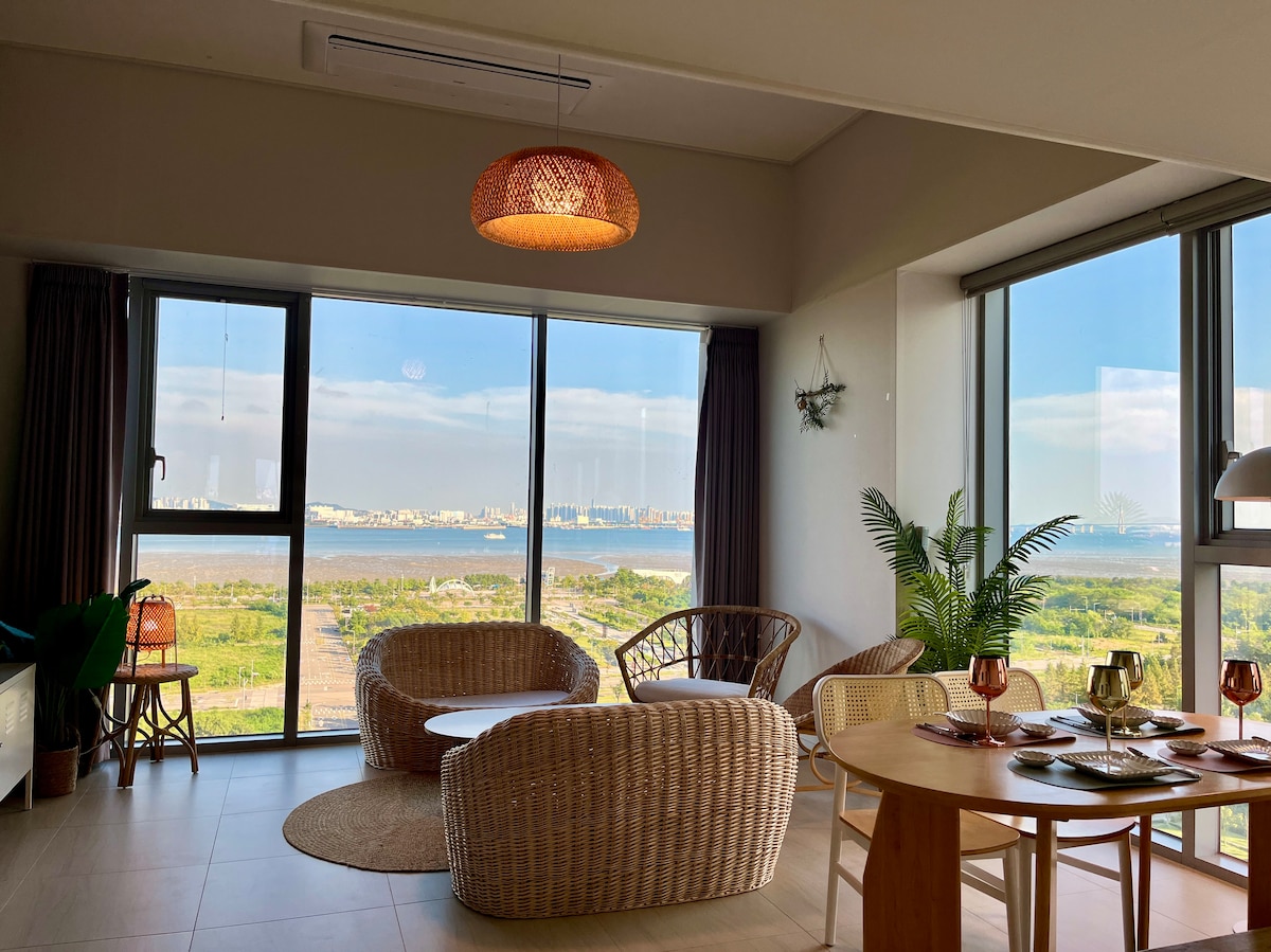 영종도 발루나 - 통유리 오션뷰 / 라탄 인테리어 / 대형 복층/ 공항15분