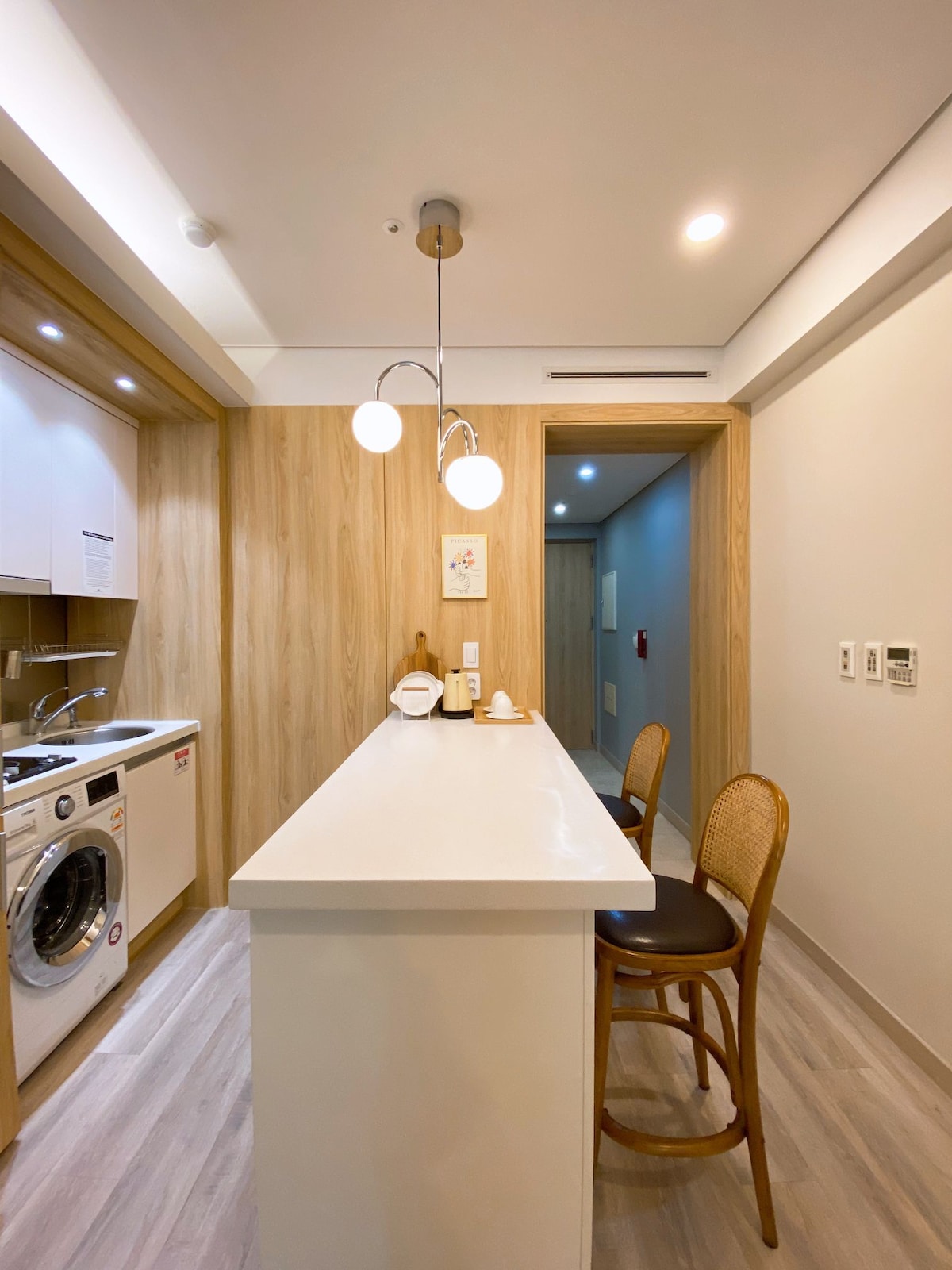 - Justo enfrente de la estación de Jagalchi. Está justo enfrente de un restaurante y una tienda de comestibles. Está muy limpio y tiene un interior muy bonito. - Hay una cama, ropa de cama, cubiertos, TV (Netflix disponible). - Cama tamaño queen (cama para 2 personas). - Se proporciona café en cápsula. - Este es un registro de entrada y salida sin contacto. - Se proporcionan secador, plancha para rizar, champú, acondicionador, cepillo de dientes, pasta de dientes y loción. - Purificador de agua. Hielo en el congelador. - Por favor, usa el estacionamiento público enfrente para estacionar. Se paga la tarifa de estacionamiento (10 000 won por día) - Por favor, infórmanos con antelación sobre el registro de entrada anticipado y el registro de salida después de la hora establecida (se incurrirá en un cargo adicional). - Depósito de equipaje disponible. Por favor, avísame con antelación cuando guardes el equipaje.