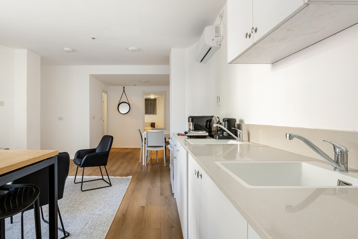 Hi and Welcome to your urban oasis in downtown Haifa! Nestled in the heart of this vibrant area, our apartment offers you the perfect blend of modern comfort and convenience. The place can accommodate up to 6 adults or 4 adults with 4 kids (2 queen beds and to 2 sofa beds). Our place is located in the heart of the best food scene and night life area. You'll have a great time exploring around just by walking half a mile radius. בבקשה שימו לב שהמחיר לא כולל מע"מ. תיירים פטורים.