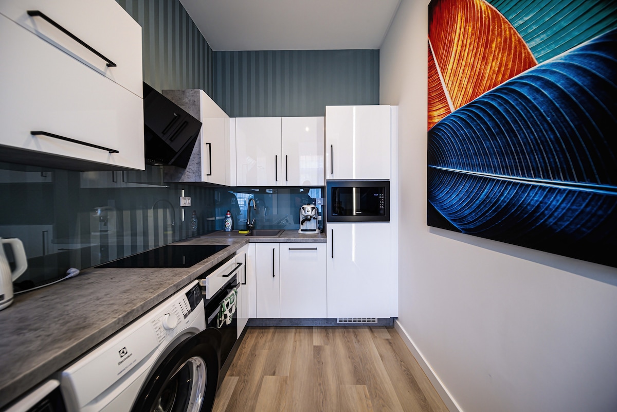 Nuestro apartamento para dos personas es una opción ideal para parejas que buscan un descanso tranquilo y cómodo. El amplio baño y la cocina grande y bien equipada proporcionan el telón de fondo perfecto para la relajación compartida. La acogedora terraza al aire libre es un gran lugar para desayunar café o vino por la noche. El ambiente tranquilo y el mobiliario acogedor garantizan una estancia agradable en todas las estaciones.