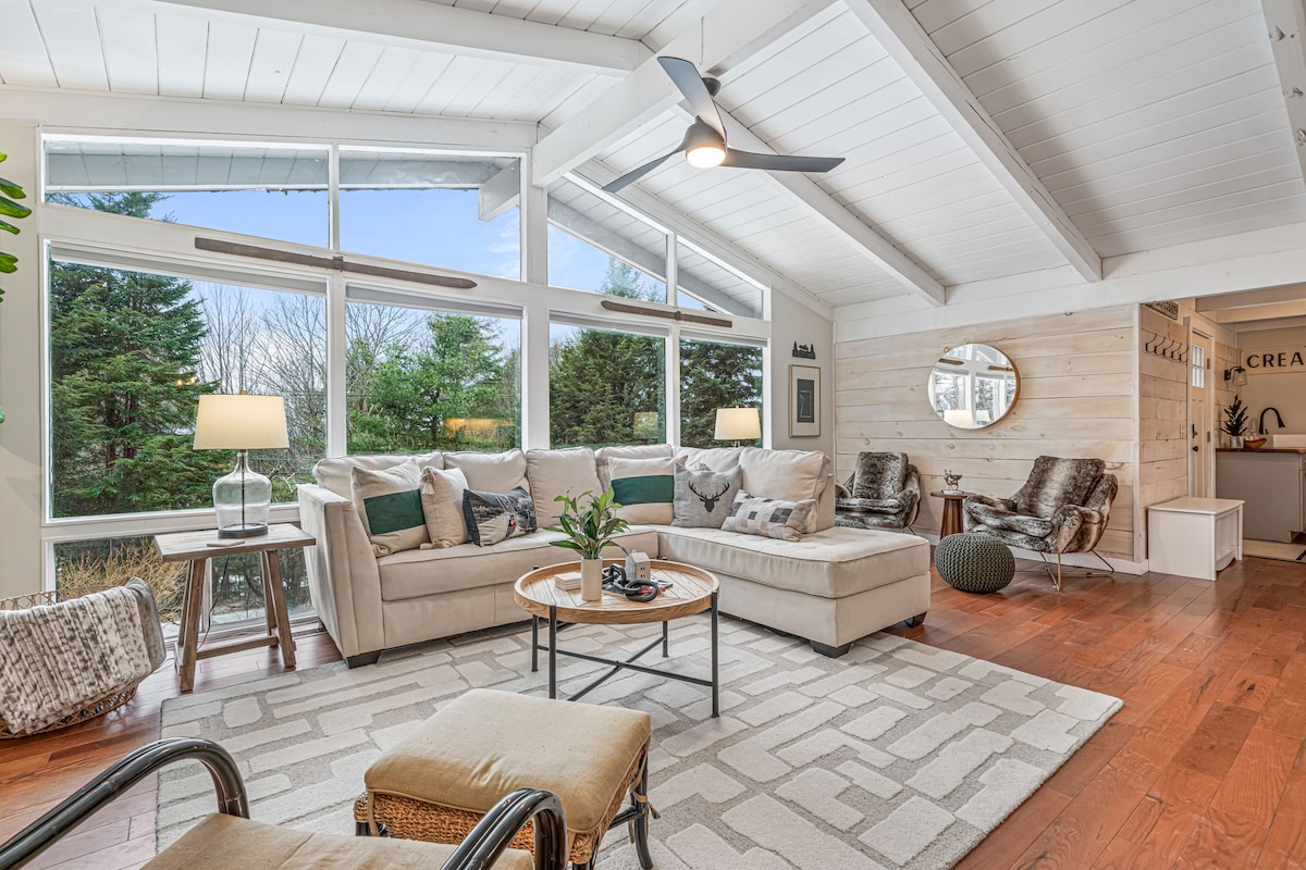 Tucked away in the scenic Gunstock Acres neighborhood, this newly renovated mountain chalet will capture your heart from the moment you walk in. The home has ample parking, beautiful deck overlooking a large flat backyard, and yard games. There are also plenty of quiet nooks for working from home and reliable wifi. All of this, while being equidistant between the mountains and Lake Winnipeasukee. What more could you want?