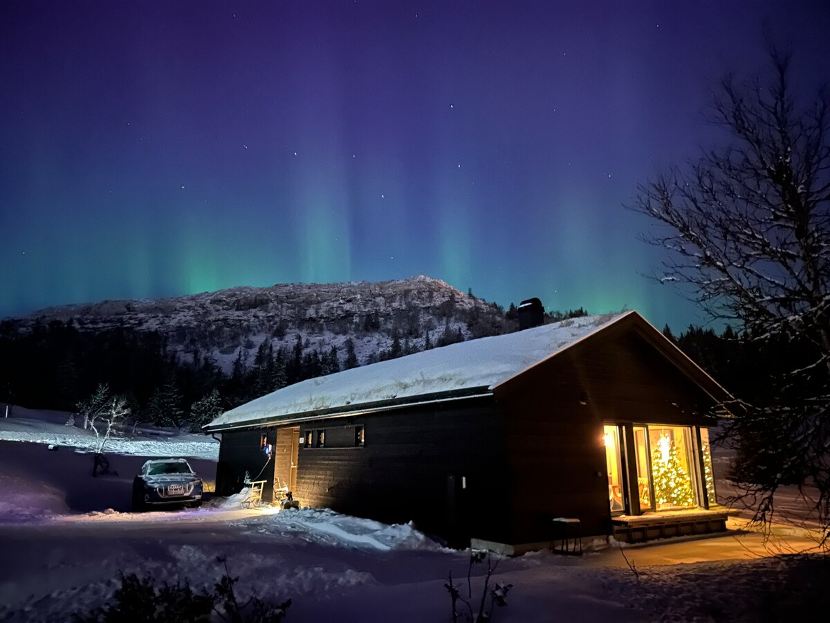 Hytte ved fjell og vann nær Sjusjøen/Lillehammer