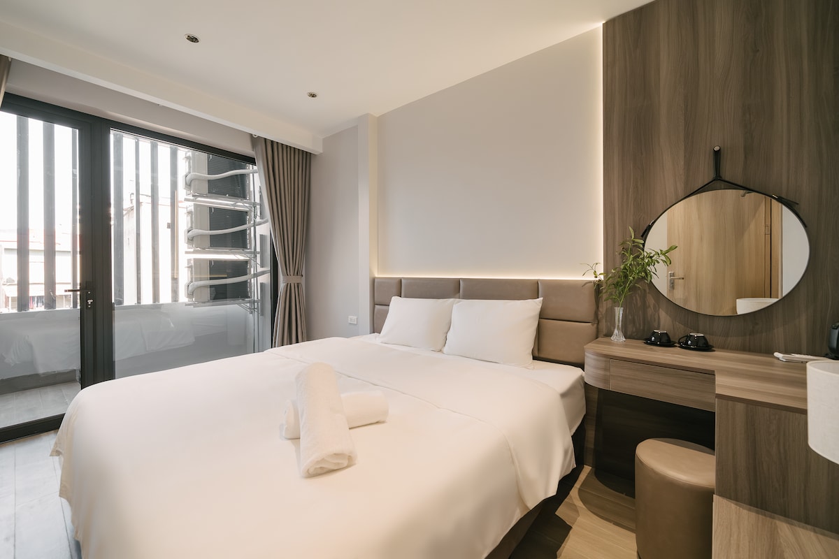 Disfruta del casco antiguo de Hanói desde un refugio moderno a pocos pasos de la icónica TRAIN STREET. Este apartamento cuenta con una CAMA SUPER KING SIZE, UN CÓMODO SOFÁ y un baño de lujo con ducha y BAÑERA DE MADERA. Cocina en tu COCINA PRIVADA y relájate con el PROYECTOR de 100 PULGADAS y el wifi. UNA GRAN VENTANA INSONORIZADA ofrece vistas animadas a la calle, combinando el encanto de Hanói con las comodidades del hogar. Ideal para viajeros que buscan una estancia única y tranquila en el corazón de la ciudad.