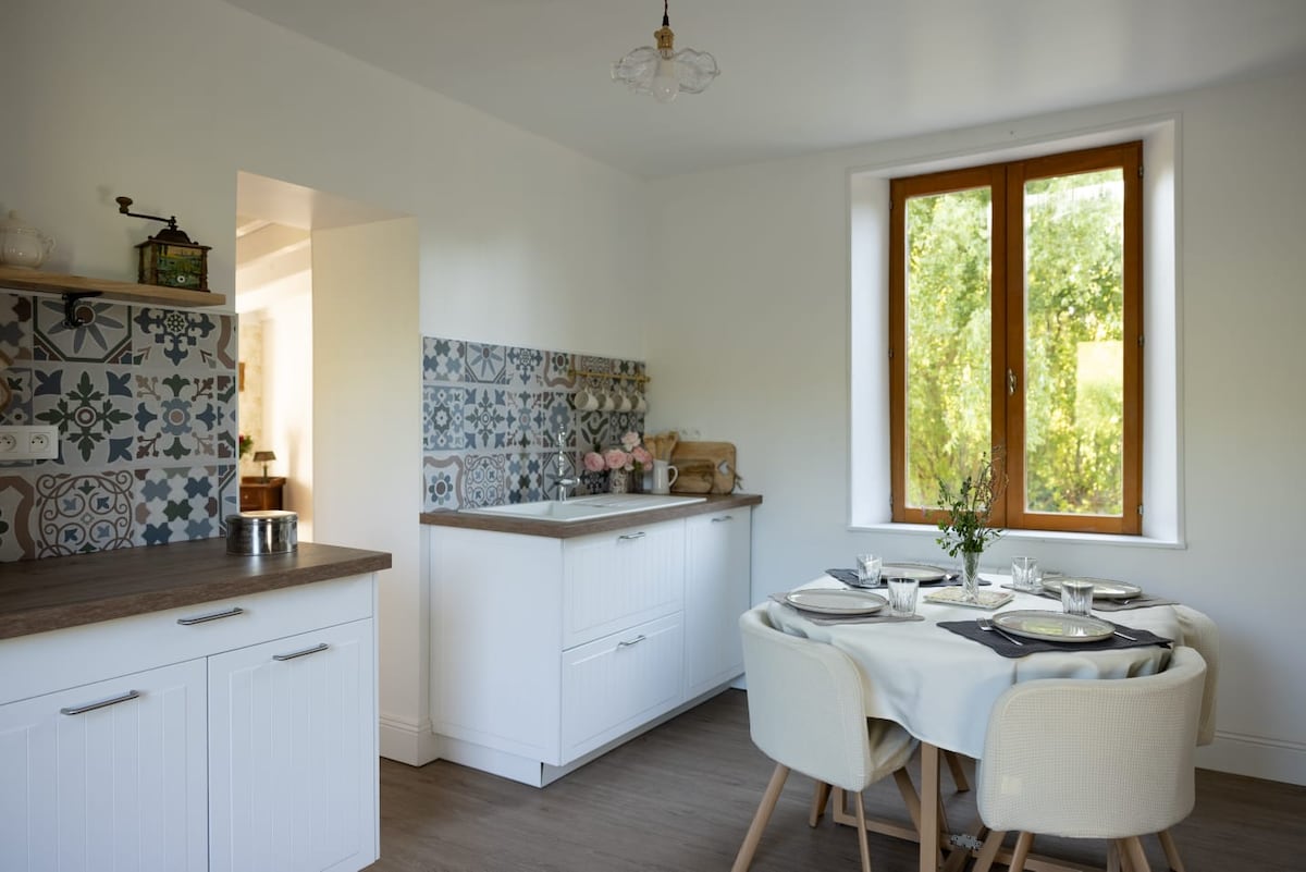 Nichée dans un écrin de verdure, notre ancienne cressonnière rénovée est une parenthèse de calme. Depuis la terrasse, admirez le coucher de soleil sur l’étang (accès privatif – baignade interdite). Ici, on ralentit et on profite du moment. Le gîte allie charme et confort : cuisine équipée avec piano de cuisson, salon cosy, salle d’eau et deux chambres à l’étage, chacune avec WC et lave-mains. Terrasse sur le jardin, parking privé et linge fourni pour un séjour simple et ressourçant !