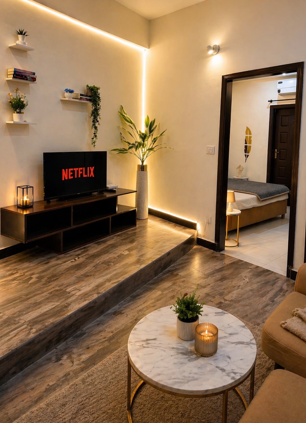 Welcome to Luxorèa Retreat, a thoughtfully designed studio apartment offering a refined blend of modern comfort and understated luxury. Located just 5 minutes from Islamabad International Airport, it is ideal for short stays and transit travelers. Enjoy a serene ambiance, premium finishes, and seamless access to M1 & M2, ensuring both convenience and a sophisticated stay experience, every time.
