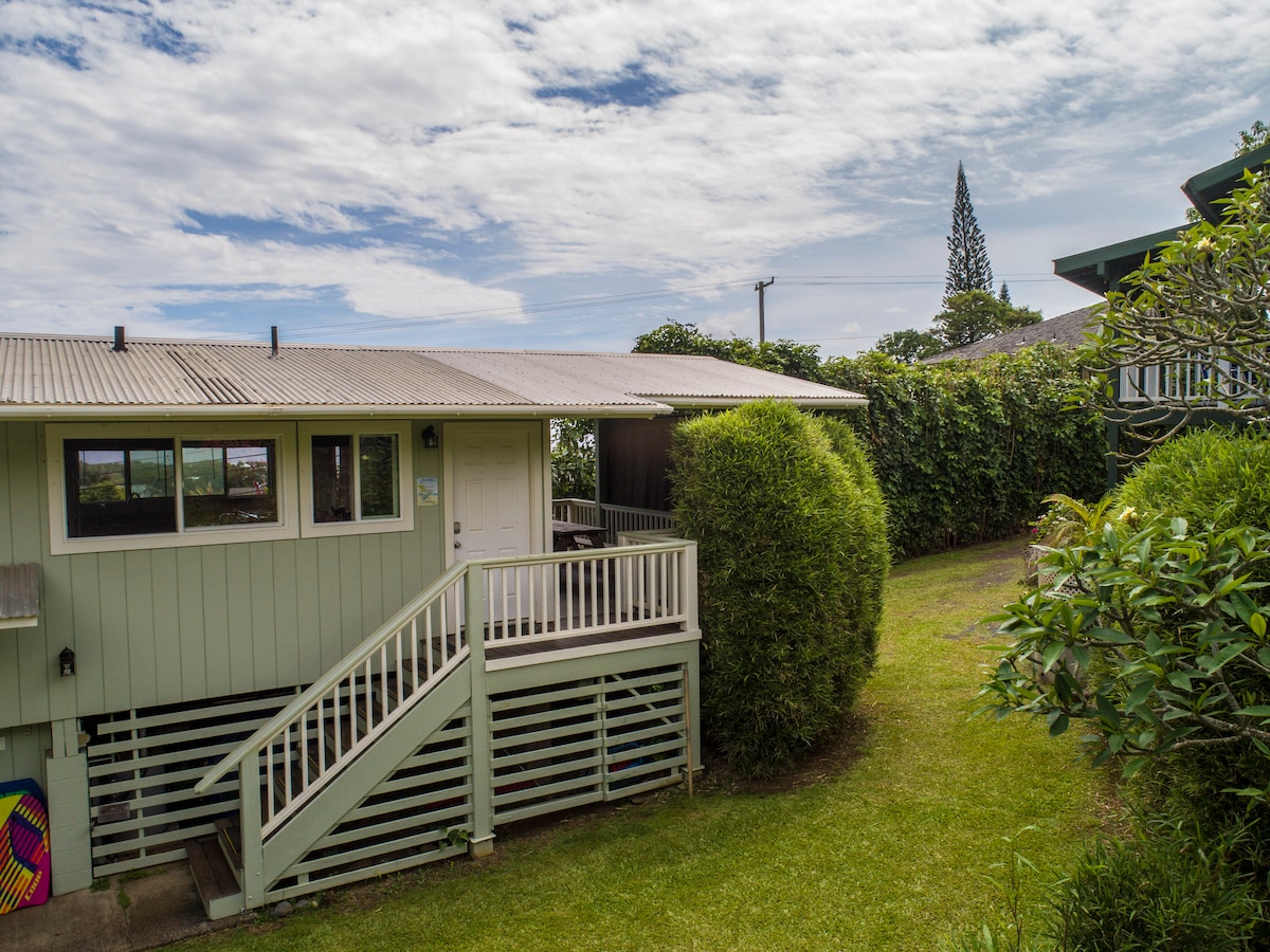 La casa de campo se encuentra en la parte superior de nuestra exótica granja de frutas de 5 acres. Disfruta de tu estancia recorriendo la propiedad y relajándote en nuestro acogedor hogar lejos de casa. La casa está equipada con todo lo necesario sin el desorden. Desde la sala de estar, disfruta de vistas al mar, árboles frutales y flores tropicales. Escucha el canto de los pájaros por la mañana y observa cómo el cielo cambia de color al atardecer. Nuestros alojamientos tienen licencia del estado de Hawái. Nuestro número de licencia es BBHA 2020/000.