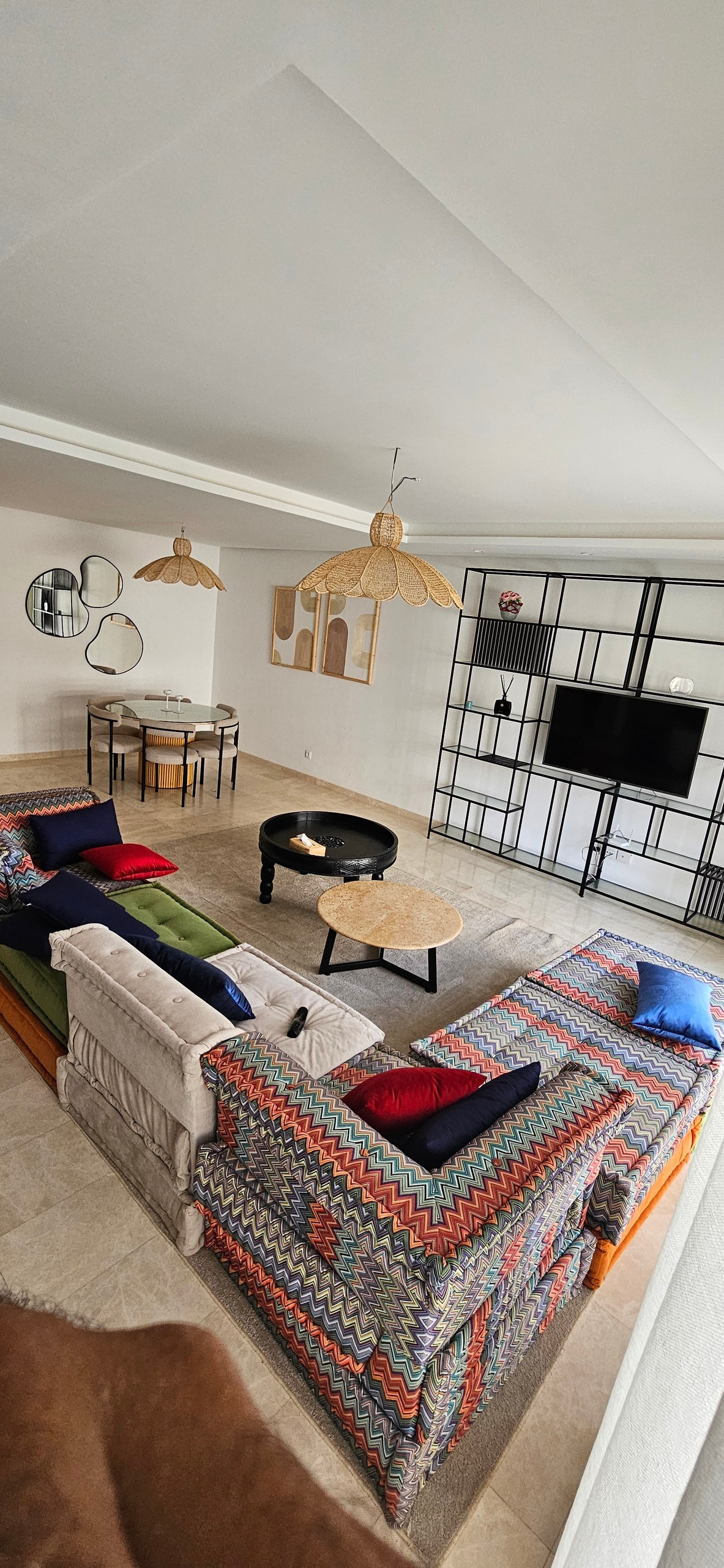 Situado frente al nuevo «Mall du carrousel», disfrute de un alojamiento elegante y único en la prestigiosa residencia «Le phare du carrousel» junto al mar en el corazón de Rabat. Cuenta con un gimnasio, campo de fútbol, zona deportiva al aire libre, zona de juegos para niños y piscina. El apartamento destaca por sus hermosas vistas al mar y a la piscina desde su terraza y su jardín privado. Un pequeño remanso de paz de lujo, amueblado y decorado por Inn design studio.