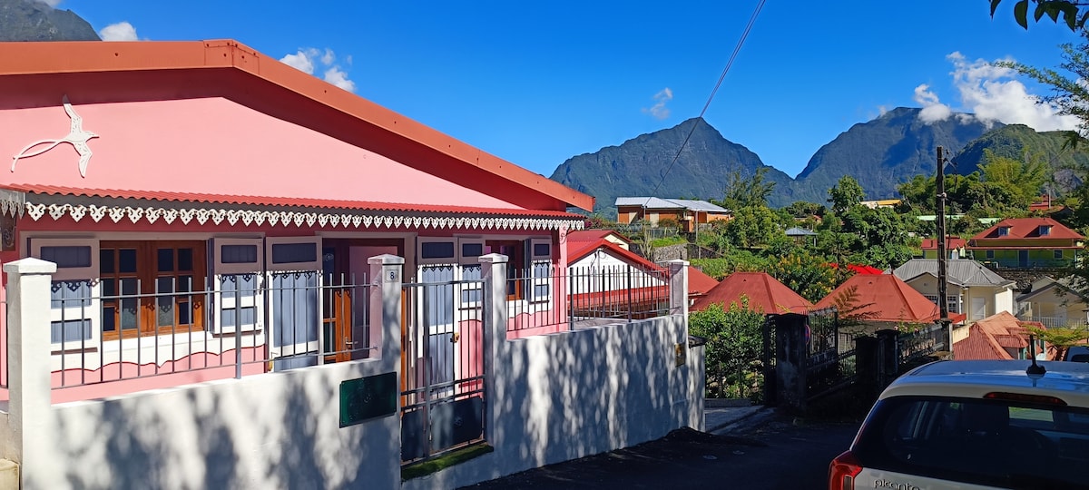 Réveillez-vous face aux majestueuses montagnes du cirque de Salazie, dans un lieu calme et lumineux. Maison idéale pour familles, couples ou amis, avec terrasse, jardin et parking gratuit. Café offert pour bien démarrer la journée ! ☕ À seulement 25 min des plus belles randonnées : Mafate, Voile de la Mariée, Bélouve… Profitez de la nature, du calme et de moments inoubliables.