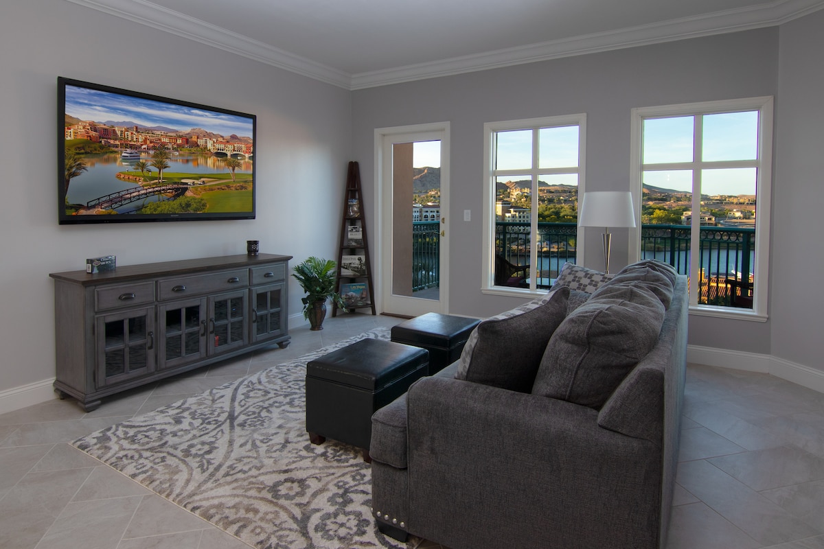 Apartamento grande, cómodo y luminoso que ofrece vistas a la montaña desde ambos dormitorios, baños y cocina y vistas al lago desde la cocina, sala de estar y balcón privado. Disfruta del café por la mañana mientras contemplas el lago Las Vegas. Observa a los surfistas de remo y a los equipos de remo por las mañanas, y escucha música en vivo mientras bebes por las noches. O da un pequeño paseo por el puente peatonal a solo unos pasos, hasta el pueblo italiano de Montelago. Abundan kilómetros de senderos para caminar y parques nacionales/estatales.